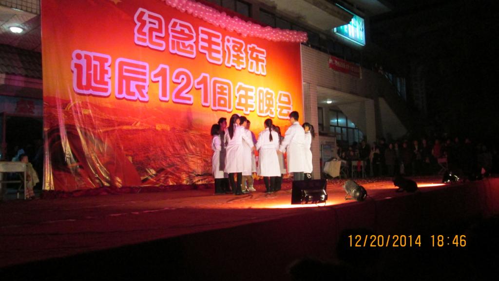 12月21日晚6:30,由医学系举办的“纪念毛主席诞辰121周年”文艺晚会在青年路校区隆重举行。