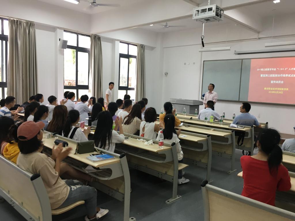 为进一步推进医教协同、合作办学、学做一体的专科医学人才培养模式,提高人才培养质量,医学系在前期与宜宾口腔医院合作基础上,拟在2017级口腔医学专业组建宜宾口腔医院合作试点班,实施口腔医学专业“1.5+1.5”人才培养模式。