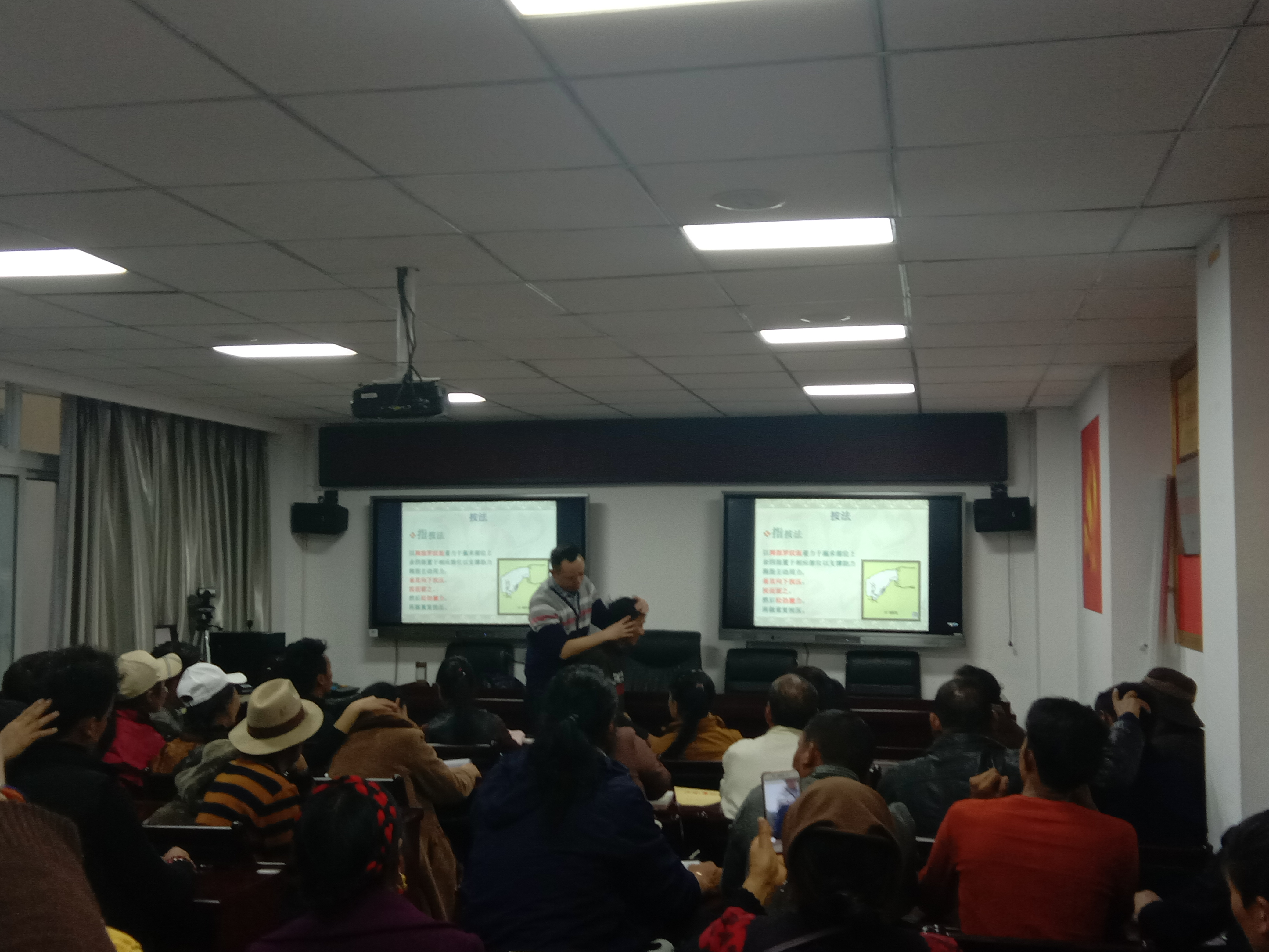 永利yl23411集团外二科曾凡主任、妇产科卢永丽主任、内科王艳玫讲师、中医骨伤康复医学科陈航讲师和院感预防保健科董赟老师组成培训教学团队承担了本次培训。培训教师均具有丰富的教学和临床经验,共有44名村医同志参加学习。