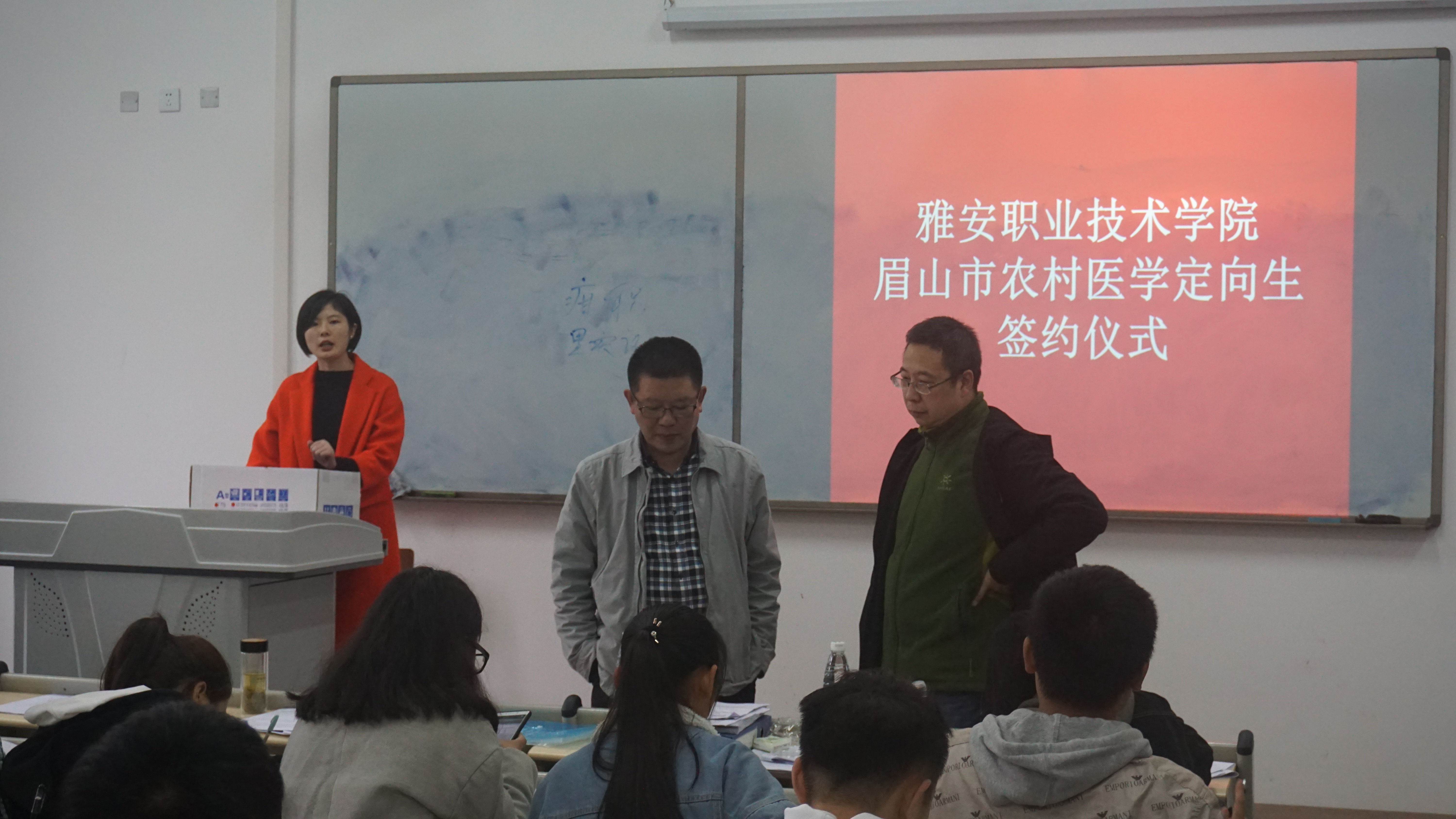 11月16日下午,医学系临床医学专业眉山市农村医员工定向培养就业协议签约仪式在经开区实训与服务中心2107举行。医学系主任薛正毅、人才招聘处处长宋峰、眉山市卫计委胡科长、辅导员、前期报名并通过审核的临床医学专业60位员工以及10余位家长参加了签约仪式。