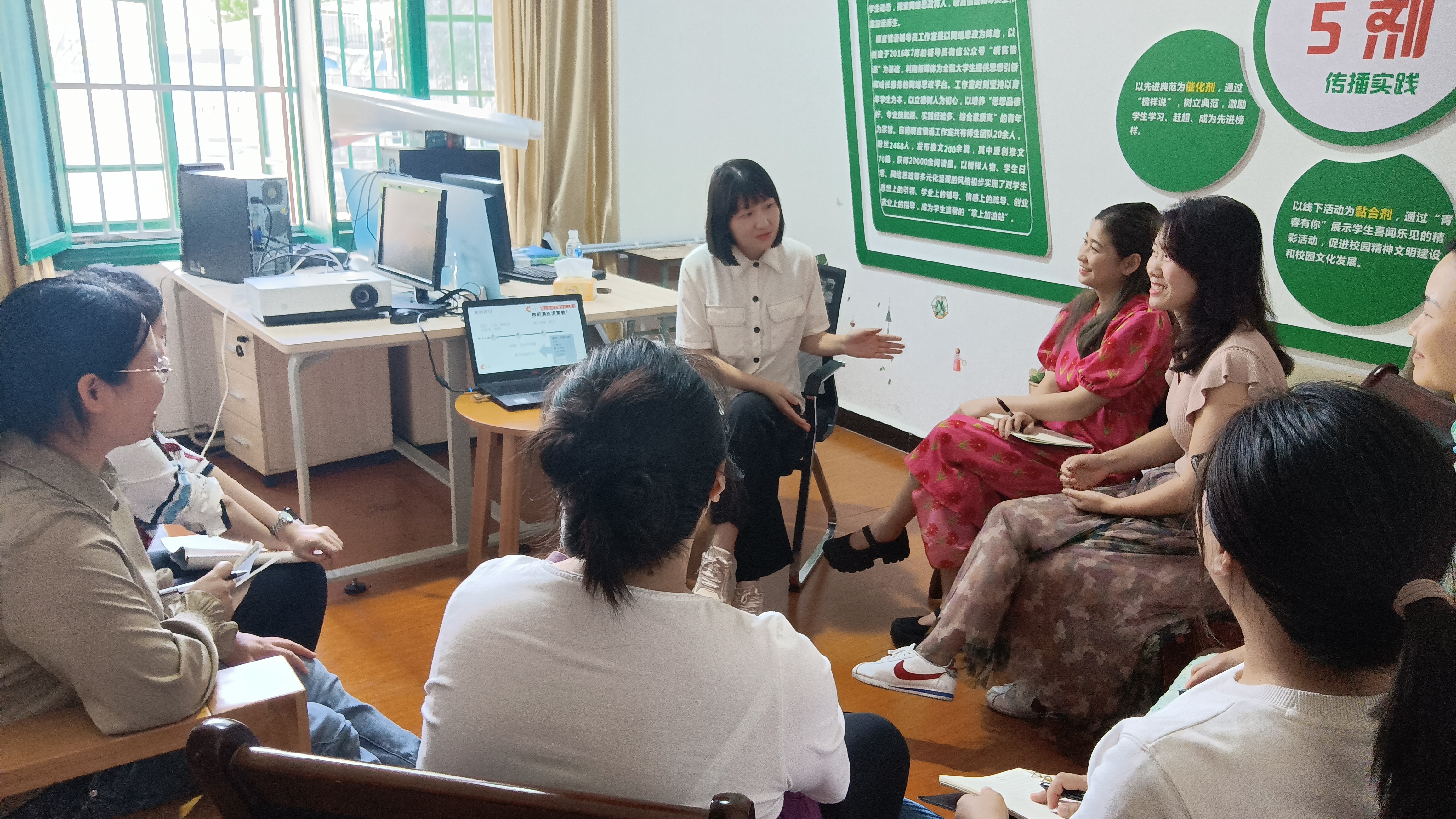 张晓惜从自身参赛经历出发,围绕基础知识测试、案例研讨、谈心谈话三个方面讲解比赛细则及注意事项,通过生动形象的案例,强调分享了案例研讨和谈心谈话比赛策略、答题技巧以及如何将大赛与个人日常工作相结合。参赛老师积极提问,纷纷加入到交流讨论中,交流会在活跃气氛中结束。