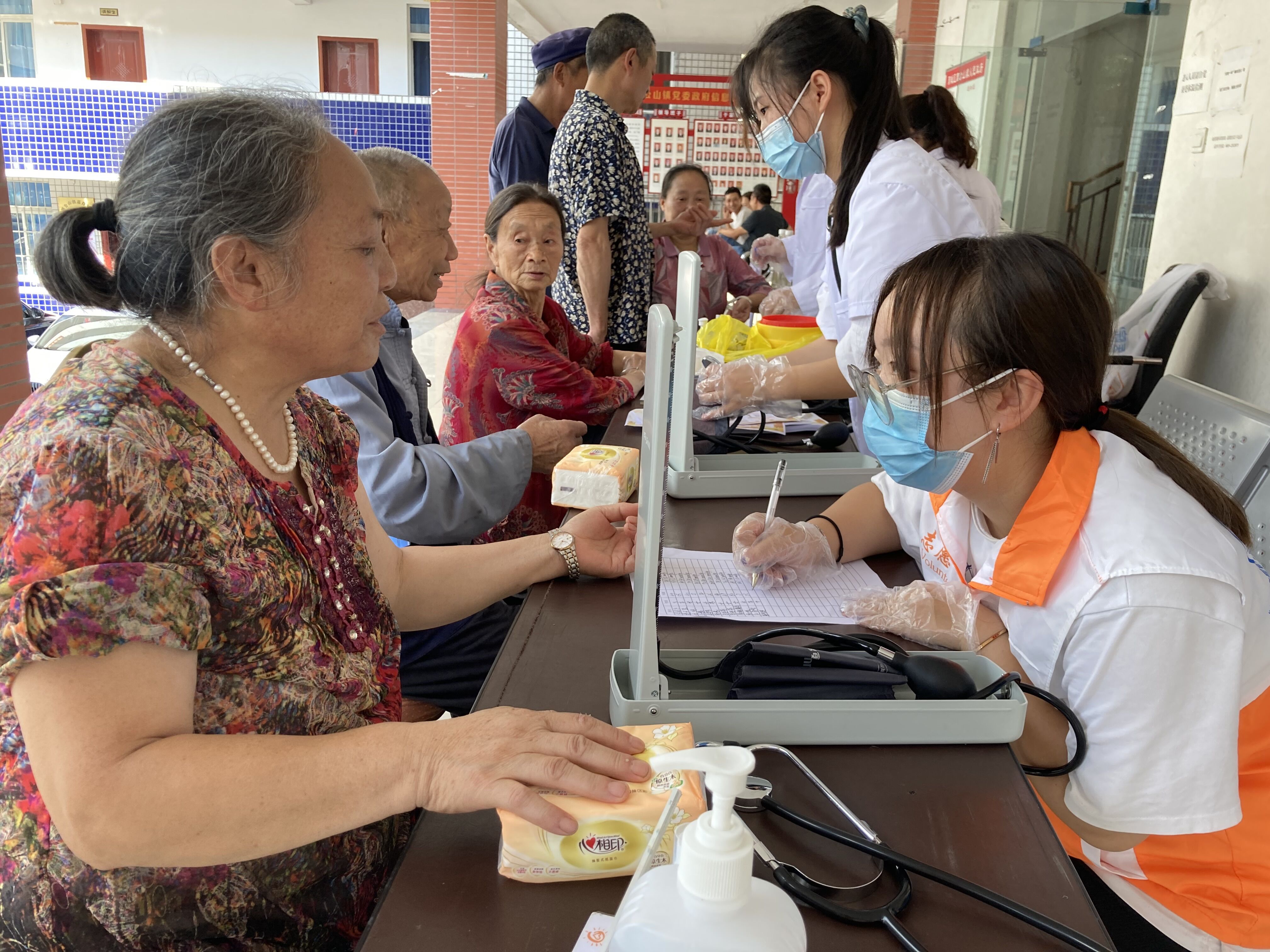 授牌仪式后,志愿者们分组开展义诊活动。医疗组对社区居民进行测血糖,测血压等基础项目,针对受众人群提出合理建议,附属医院医师李春蓉坐诊为村民解难答疑。宣传组在义诊点周边路口向居民普及卫生健康科普知识。创卫小组对乡镇周边卫生环境进行清理和维护。此次义诊共计服务200余人,测血压120余人,测血糖100余人,发放小礼品200余份。志愿者们的专业和耐心赢得了当地村民的一致好评。