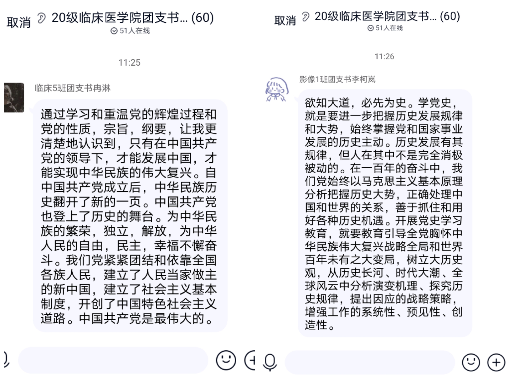本次云团课围绕习近平总书记视察清华大学重要讲话精神,重点解读中国共产党为什么“能”、马克思主义为什么“行”、中国特色社会主义为什么“好”等重大问题,运用党史微课、主题团日、实地探访、青年典型展示、文化文艺节目等多种形式,呈现了中国共产党波澜壮阔的百年历史,引领广大青年发掘蕴含其中的精神养分,领悟青年一代的使命担当。团员青年们踊跃观看,积极参与弹幕互动,并纷纷在团支部群中发表心得感受。