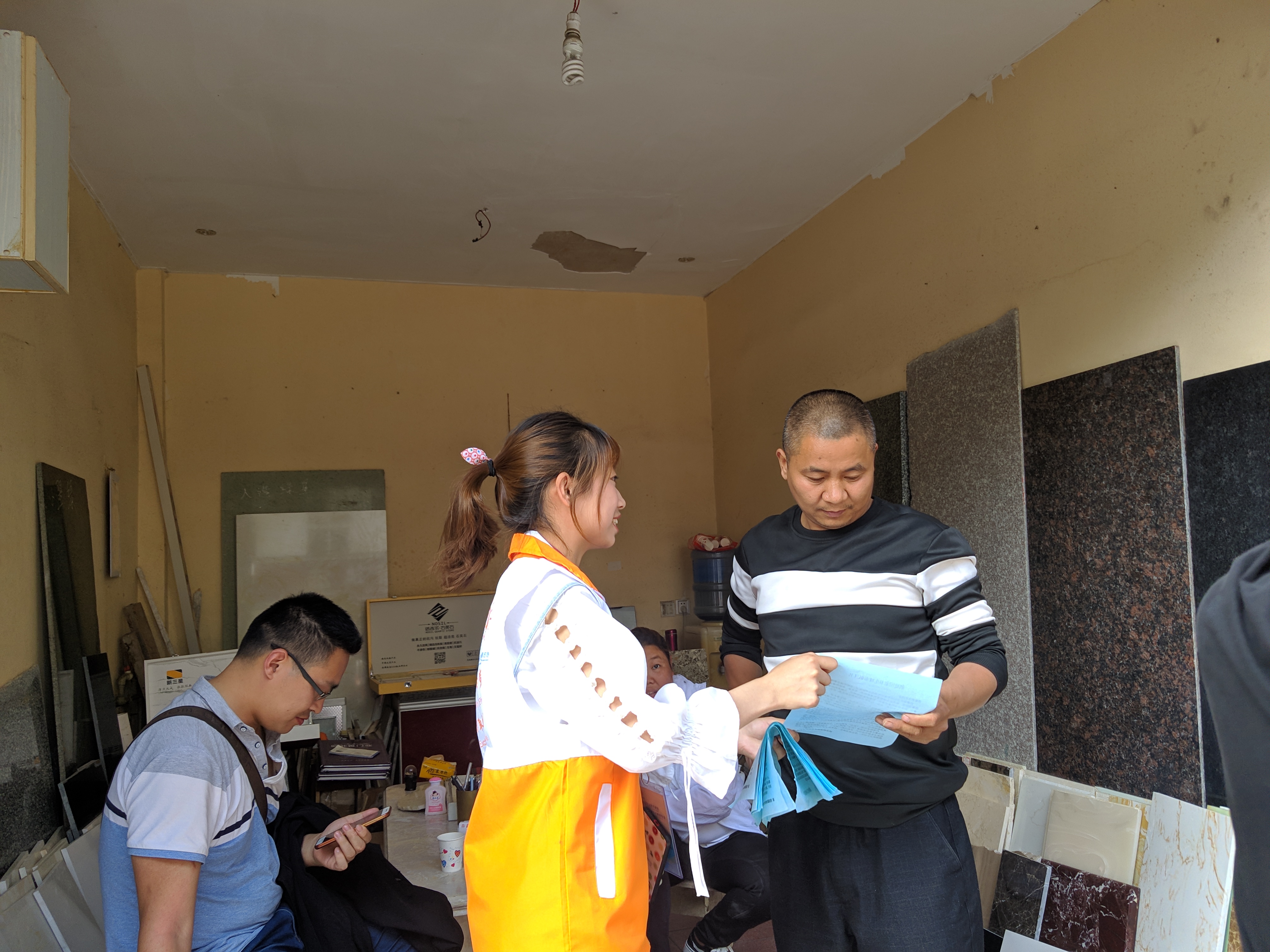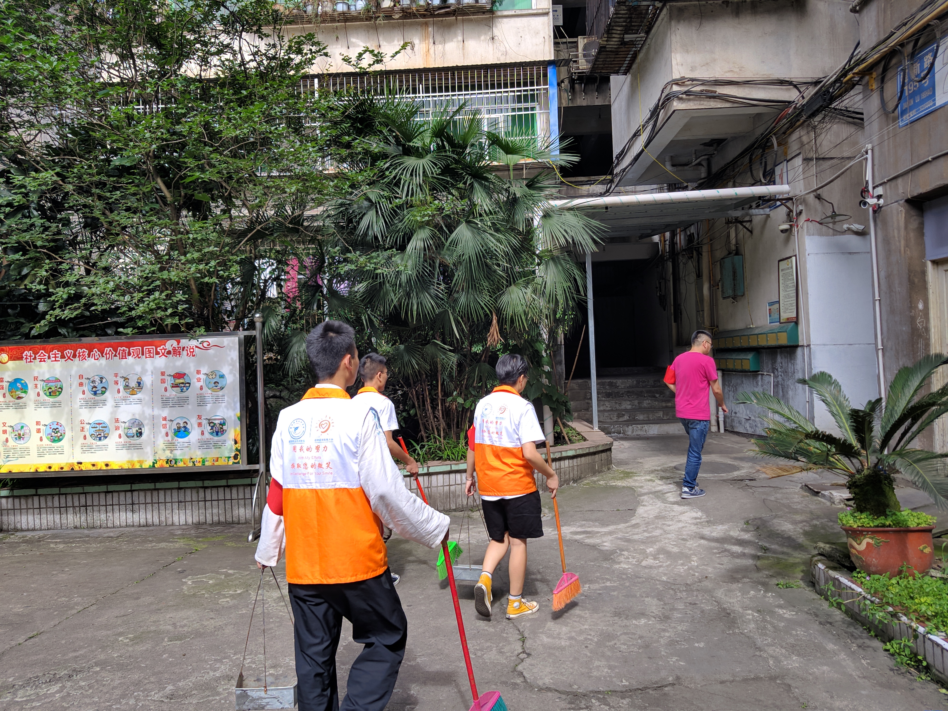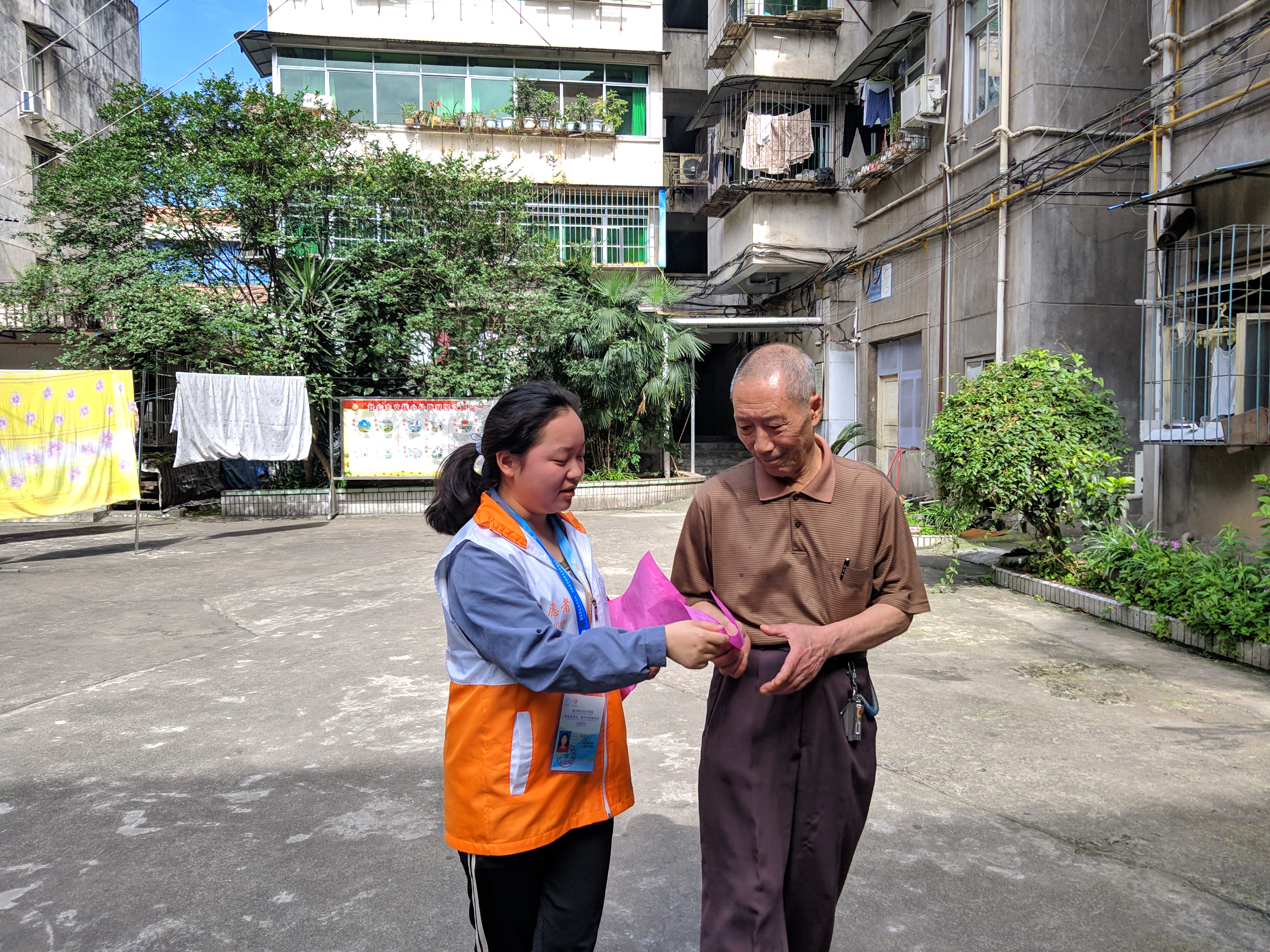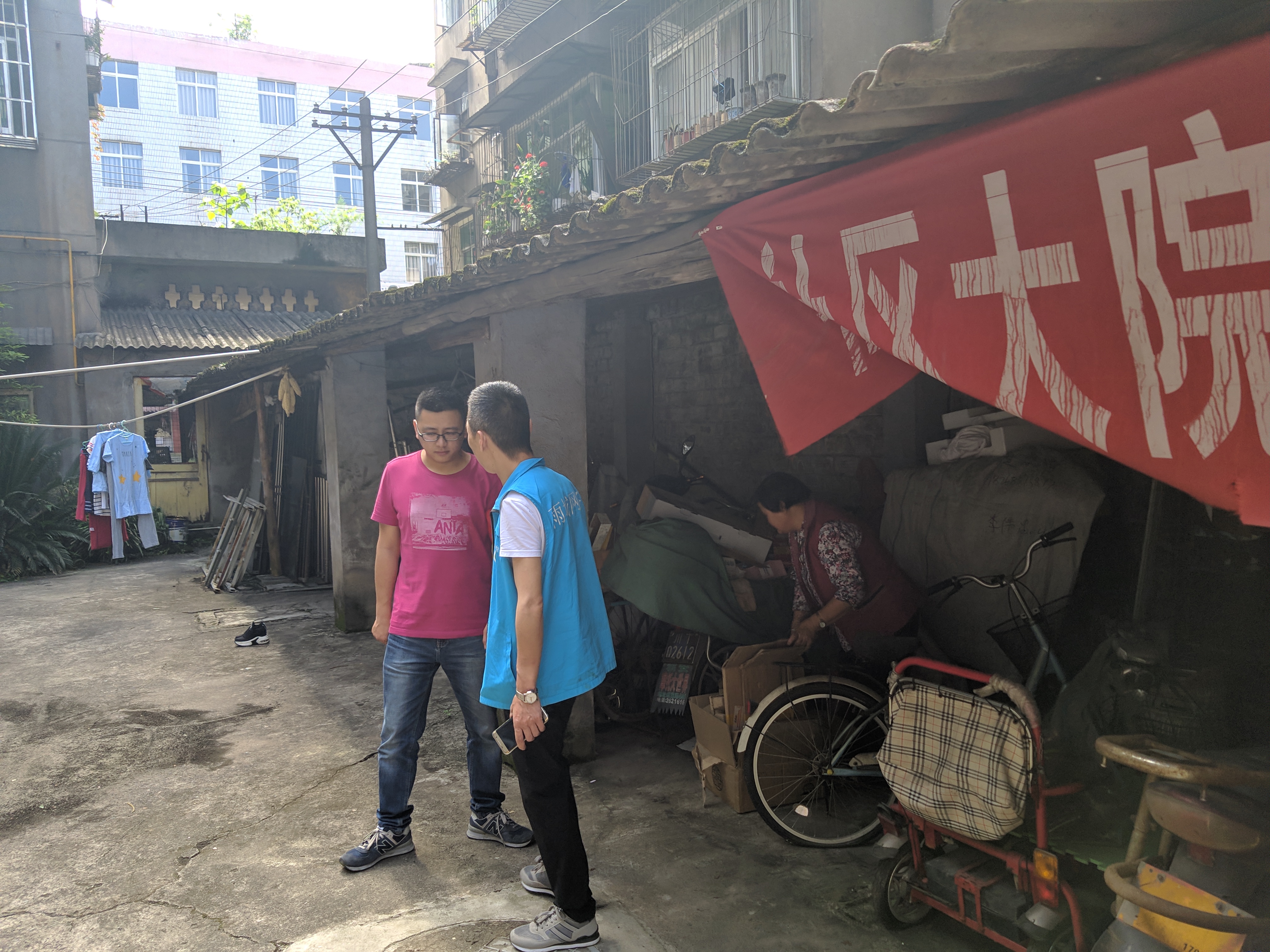 活动中,志愿者们对社区和大院的街道、沟渠、墙面的小广告进行打扫和清理,为居民分发和讲解创卫知识宣传单,劝导居民争做文明人,共创卫生城。万炅老师通过走访、交谈进一步了解目前社区存在的卫生问题,与社区和大院的负责人一起讨论对策,提出整改建议。