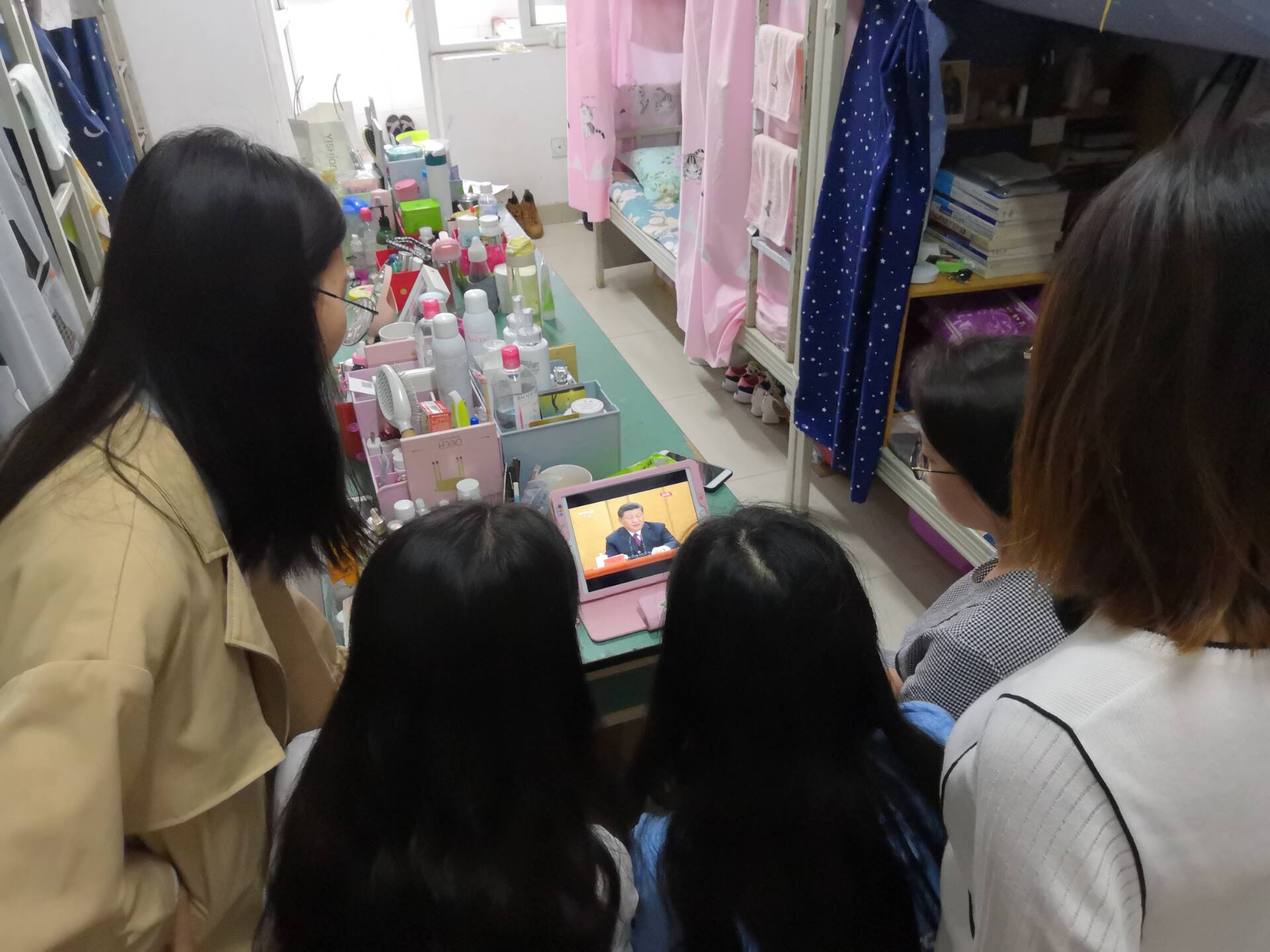 大会学习后,同学们自主学习习近平系列讲话,表示要努力完成总书记对新时代青年提出的期望。新时代的我们要勇做走在时代前列的奋进者、开拓者、奉献者,毫不畏惧面对一切艰难险阻,在劈波斩浪中开拓前进,在披荆斩棘中开辟天地,在攻坚克难中创造业绩,用青春和汗水创造出让世界刮目相看的新奇迹!