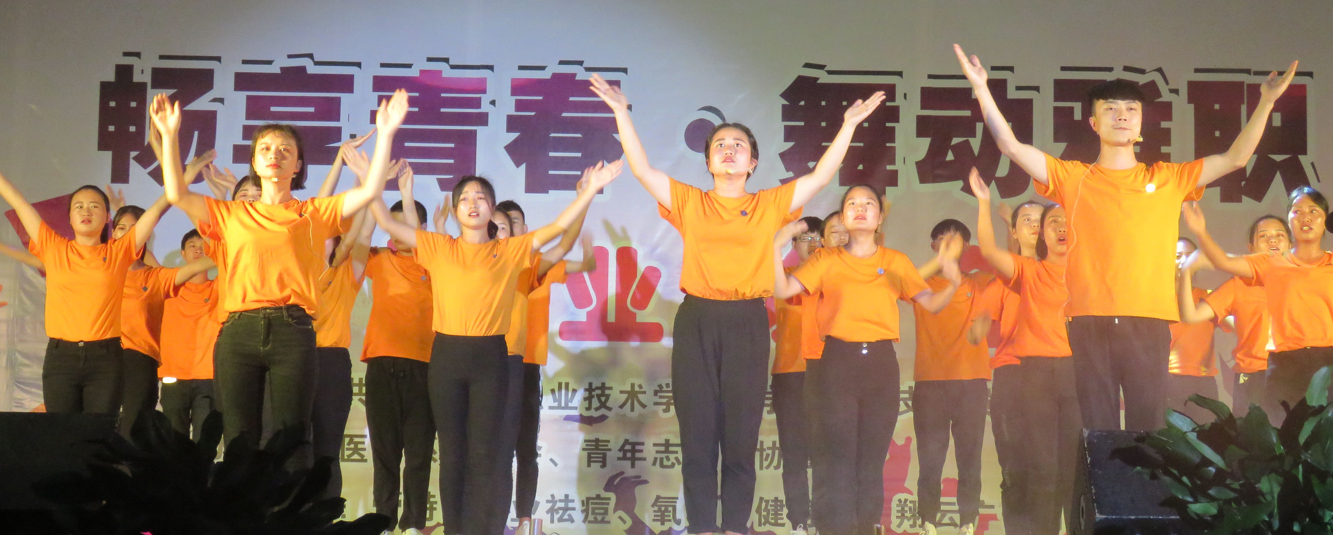 第三篇:章承青春华彩。由医学系青志协带来的杯子舞《稻香》,演员们用普通的杯子敲击出青春的铿锵。转动,交换,击掌,大家的脸上盛满对未来的自信。情景朗诵《以青春的名义宣誓》以波澜起伏的情绪,铿锵有力的语调展示了边疆工作者、山村教师以及独立创业者的内心独白,表明了毕业生致力将青春奉献给祖国最需要的地方的坚定决心。随后由藏族、彝族少数民族同学共同带来的民族舞《索玛花开》,深切展现了少数民族同学的团结和热情,现场气氛活泼欢快。