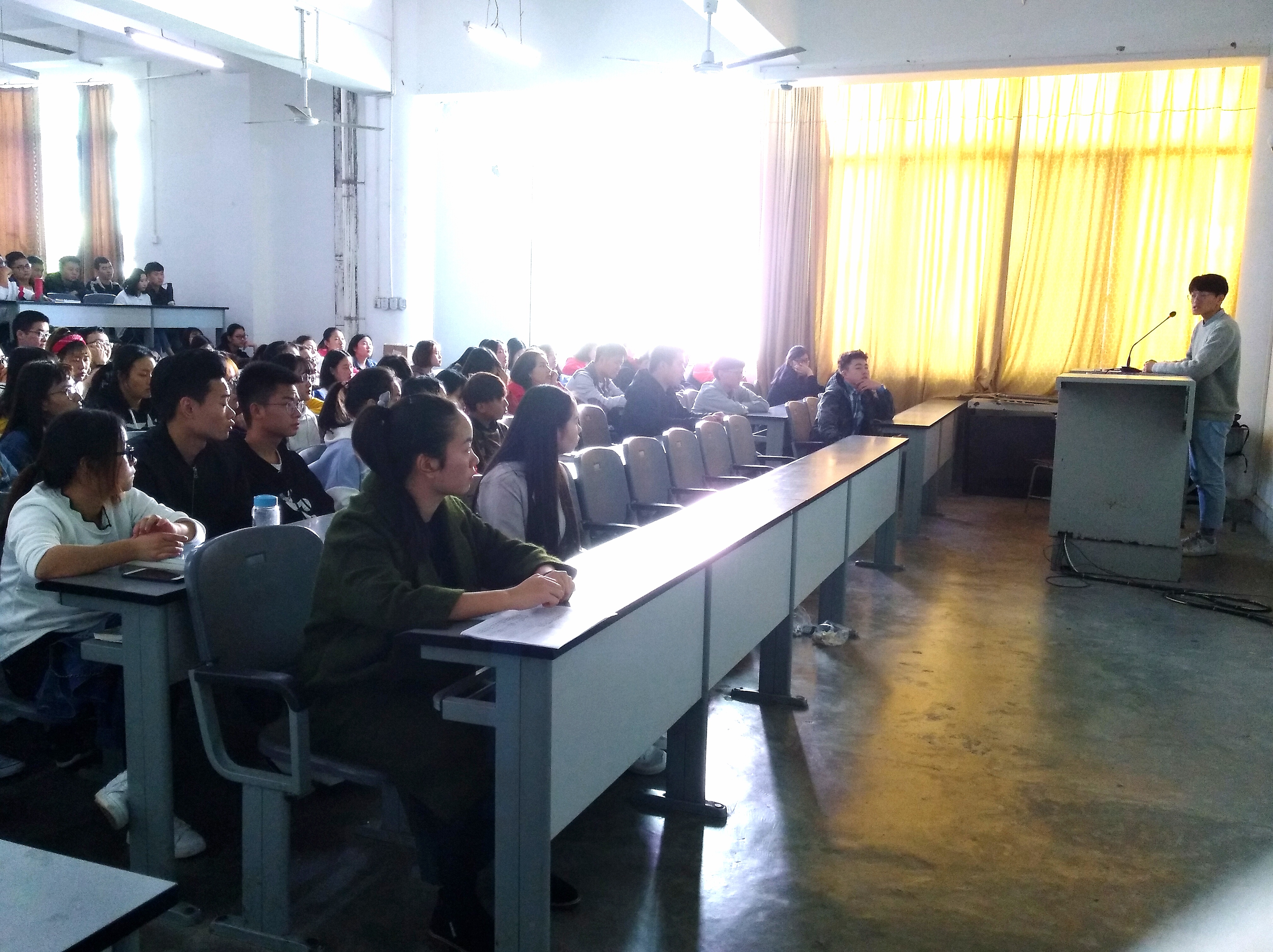 为学习贯彻习近平新时代中国特色社会主义思想和党的十九大精神,提升老员工创新创业综合能力,永利yl23411集团于10月30日中午1点在育才路实训楼214开展“青春创新经验分享会”。本次讲座由第四届四川省“互联网+”老员工创新创业大赛铜奖获得者—《益氧康复》团队夏康凌、孟祥佳主讲,永利yl23411集团各专业员工共计200余名参加。
