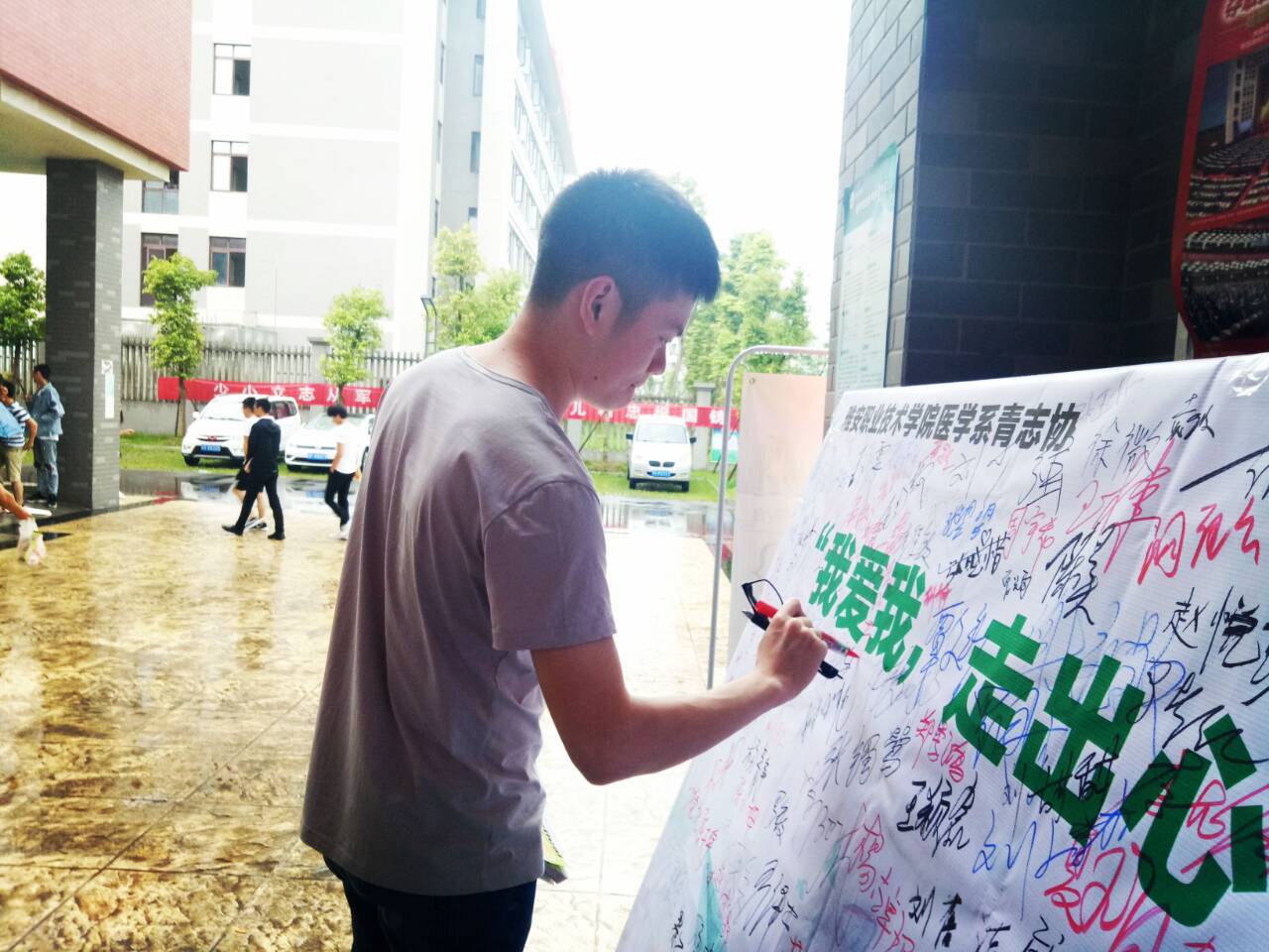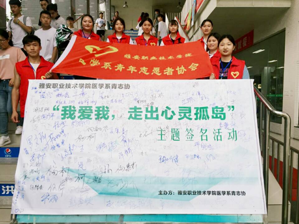 为关注老员工心理健康,积极营造有利于老员工心理健康和谐发展的校园氛围。2018年5月17日,医学系青志协副主席陈俊森携8名志愿者在名山校区展开了“我爱我,走出心灵孤岛”主题签名活动。