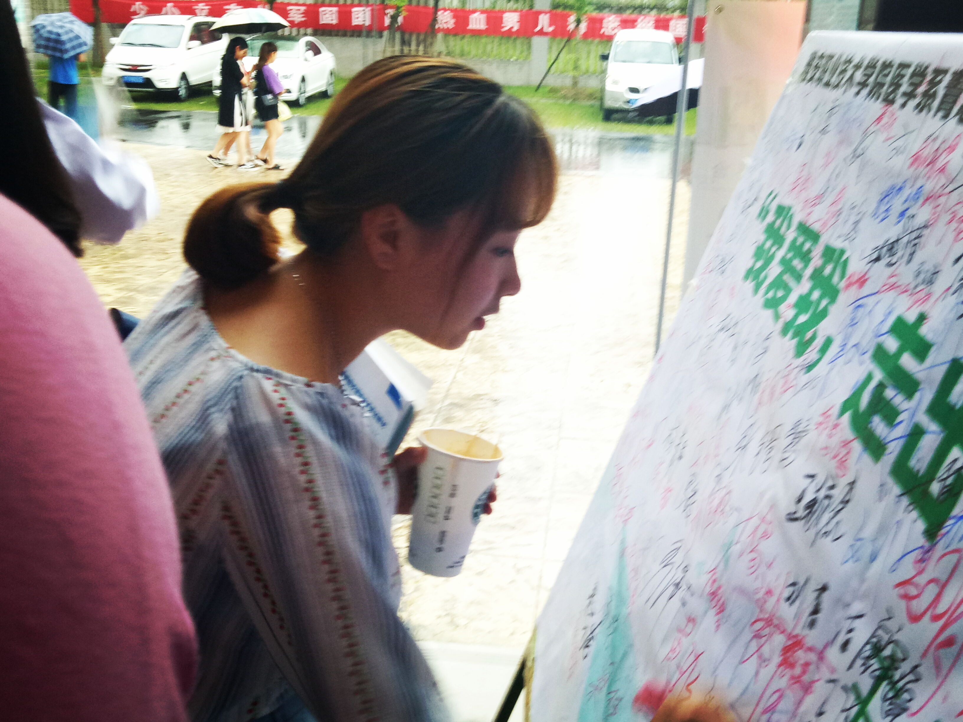 上午11点,活动准时开始。志愿者们身穿红色马甲穿梭在蒙蒙细雨中,邀请同学们在“我爱我,走出心灵孤岛”的签名版上留下自己的名字,“我爱我”是对爱我的和我爱的人最好的交代。雨一直在下,但志愿者们仍然热情高涨,路过的同学们也纷纷停下匆忙的脚步,在签名板上落下自己浓墨重彩的一笔。