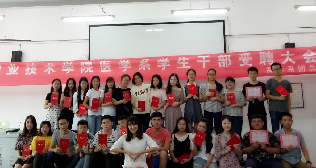 为了进一步发挥员工干部在员工工作中的模范带头作用,宣扬员工干部团队及个人工作的积极性和团结意识,更好地总结本学期团总支的各项工作,2017年6月14日下午14:30,医学系团总支在育才路实训楼214教室举行15级员工干部受聘大会暨社会实践颁奖仪式。