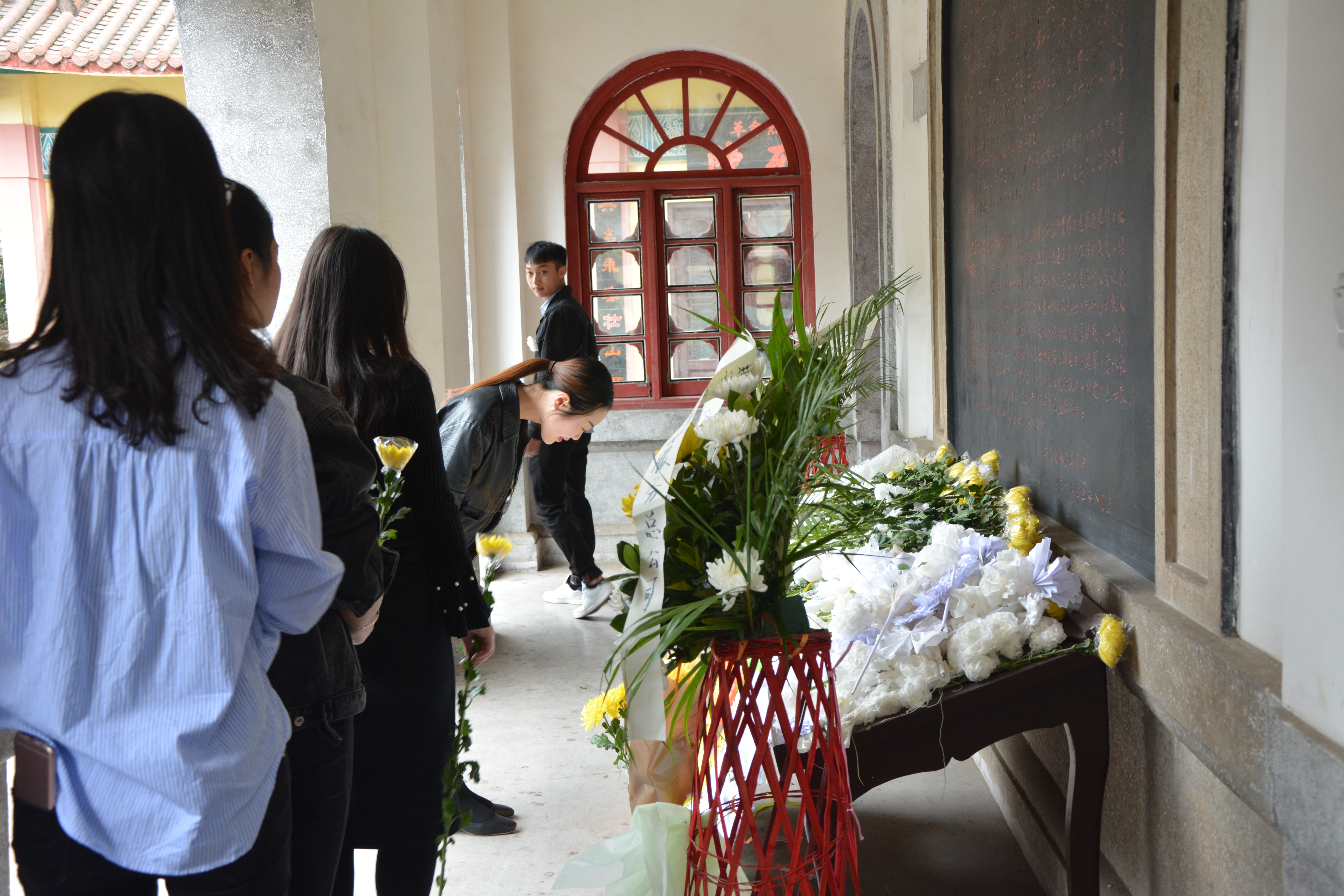 中午13点30分,参加这次扫墓活动的志愿者们在育才路校区集合,员工会的负责人进行点名签到并强调扫墓活动的注意事项。14点整,所有的志愿者们到达烈士陵园,员工会和青志协分为2组,佩戴好扫墓用的小白花,所有人默哀一分钟。而后,主持人讲解了烈士们的英勇故事并致哀悼词,大家都怀着敬仰之心,有序的向先烈纪念碑献上手中的花。