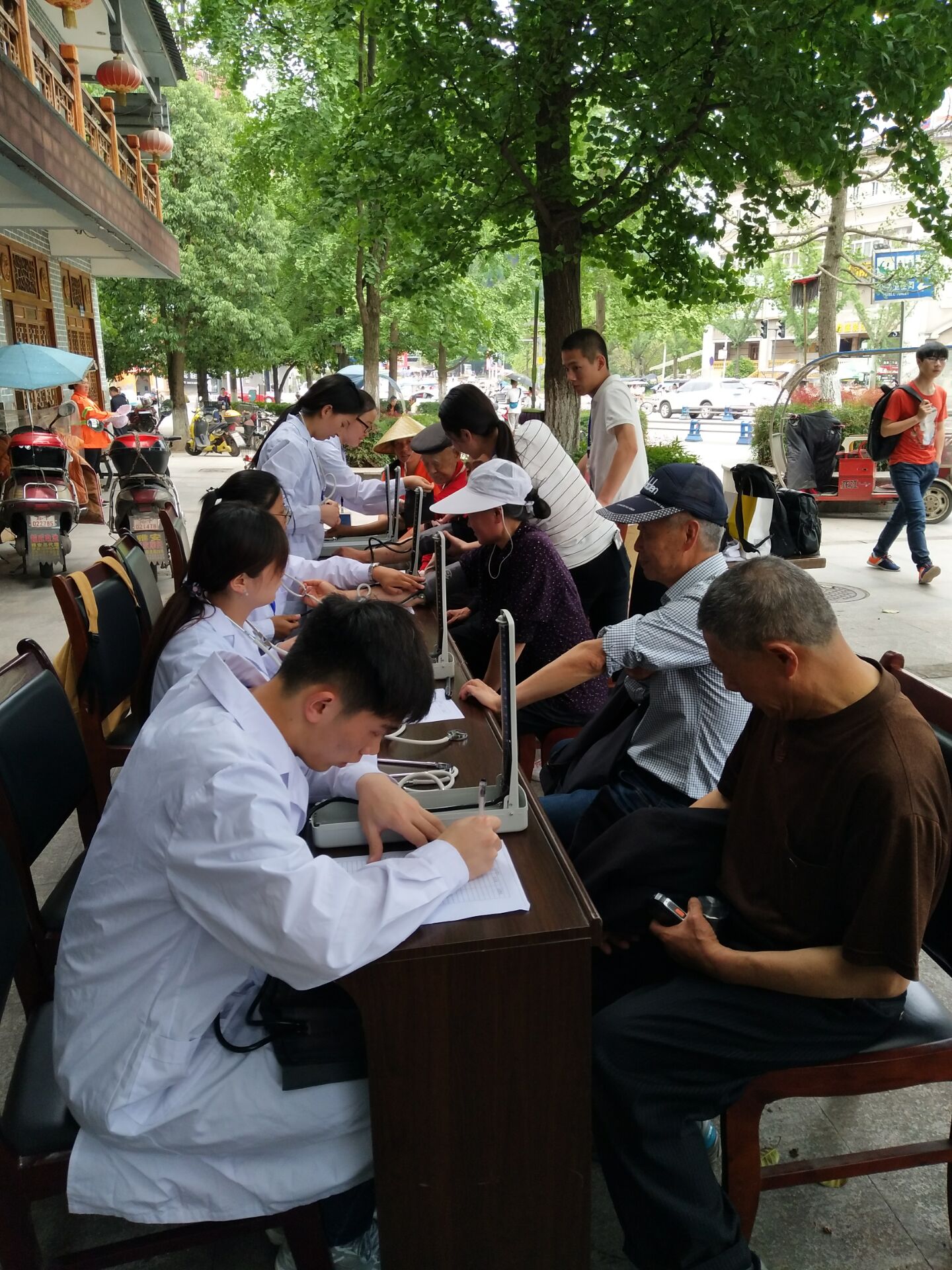 2017年5月14日,星期日(母亲节),为增强居民的健康意识,提高居民健康知识和水平,加强干事间的合作能力,提高干事们的动手能力,体现雅职院青志协医员工积极向上、服务社会的风采。雅职院医学系青志协于14日下午2点整在雅安市雨城区河北街道挺进路“中华第一吻”旁开展义诊活动。
