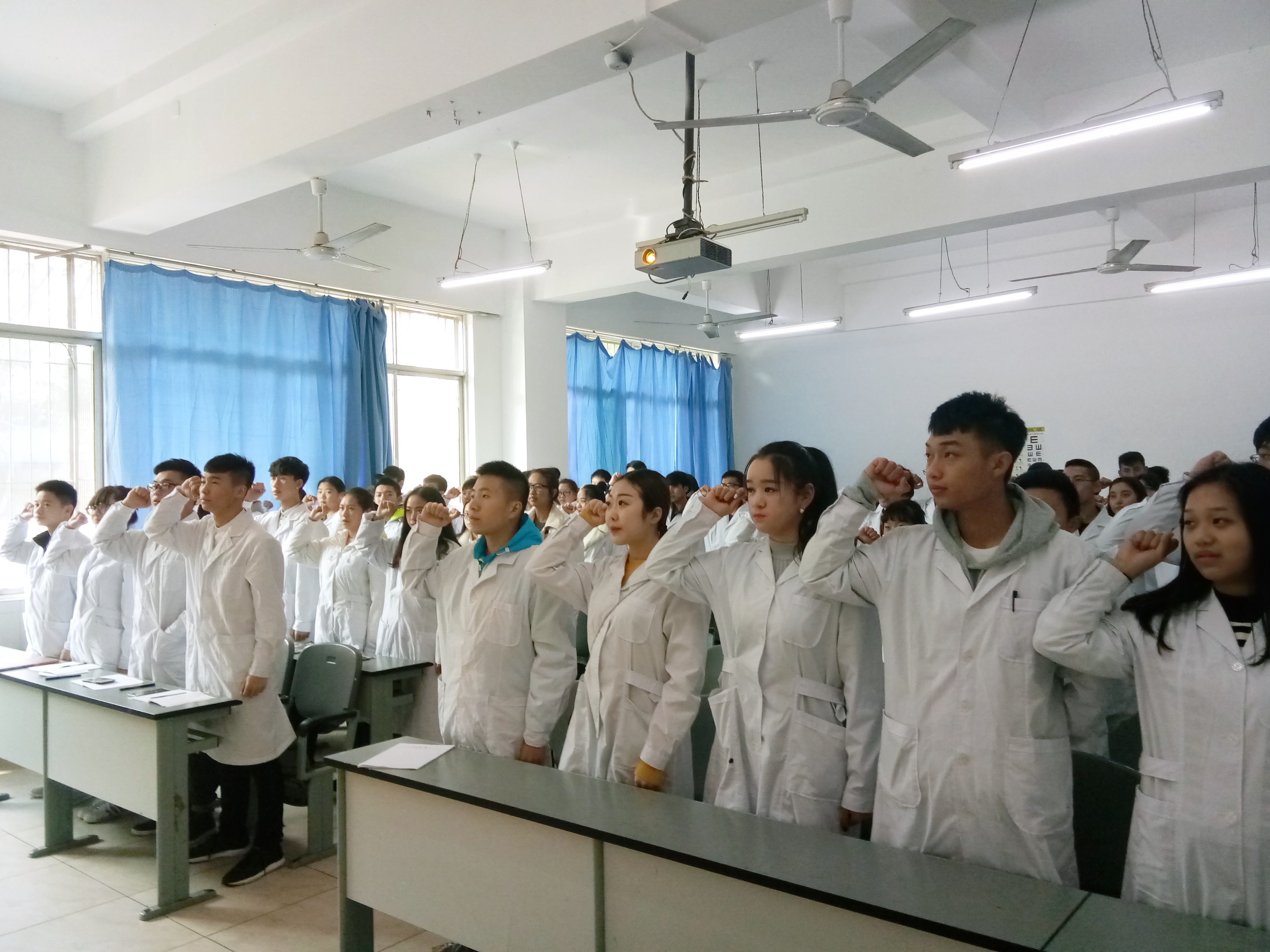 为培养医员工的责任感、使命感和自豪感,营造积极向上的学习氛围,医学系青志协、员工会于12月16日14:00在育才路校区实105举行了医员工宣誓活动,医学系16级各专业员工代表共120名参加。