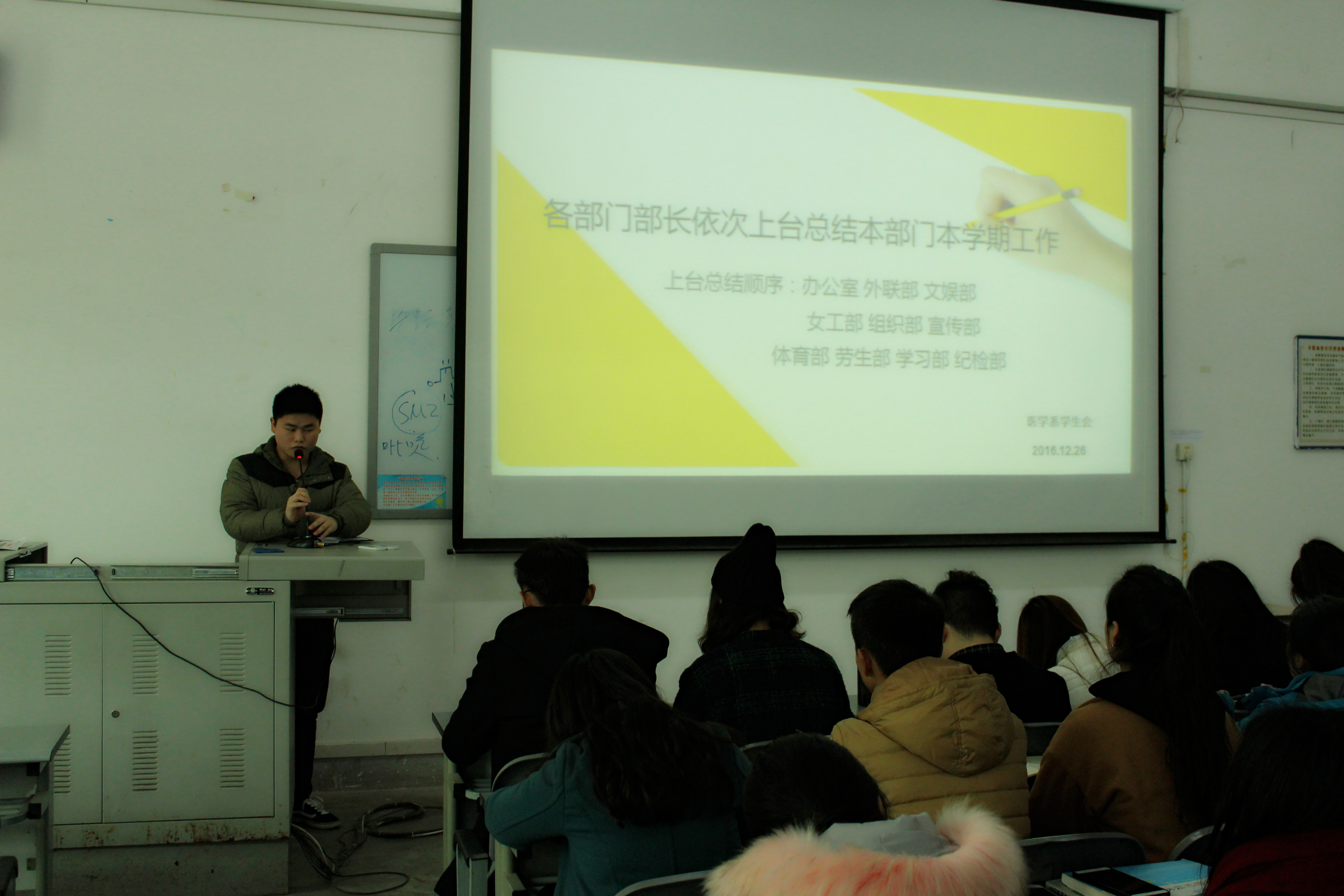 为了提高员工会干部素质和管理经验,促进员工会的良性发展,医学系员工会在医学系团总支老师的指导下,于2016年12月26日下午13点在育才路实214举行了本学年年终总结大会。