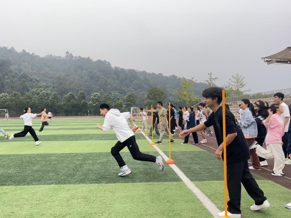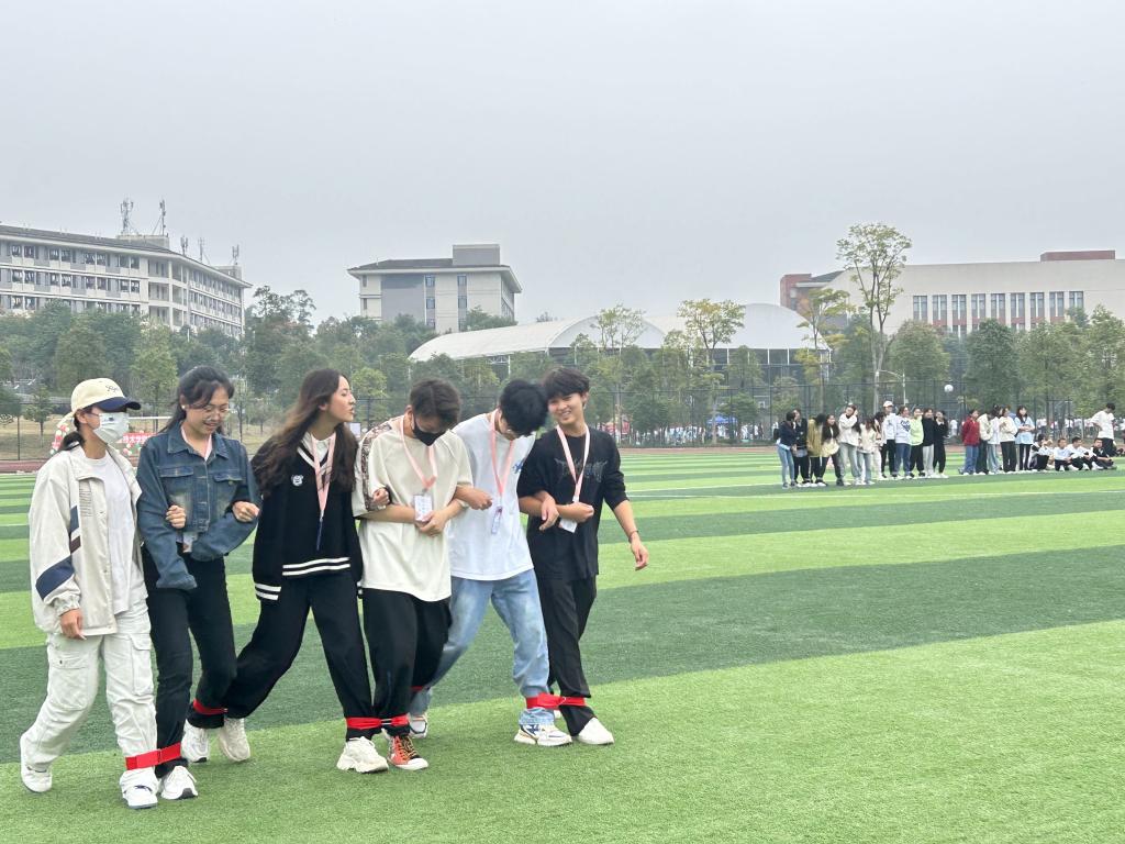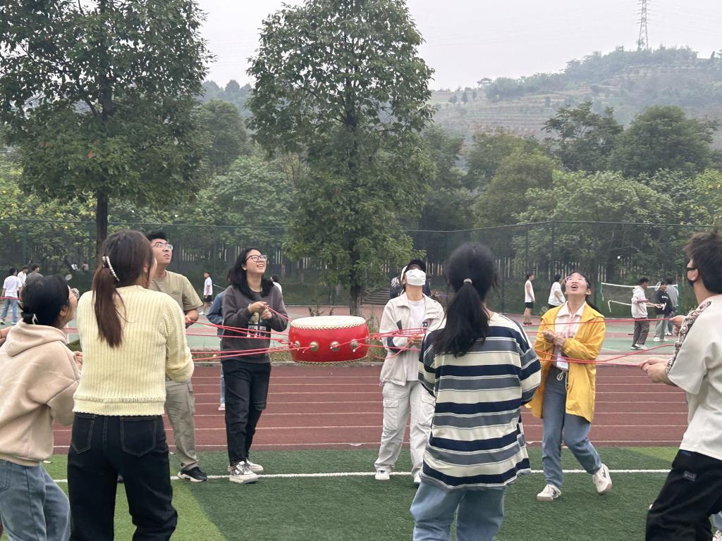 趣味运动会共六个项目:爱的抱抱、六人五足、“过河拆桥”、十人接力赛、众人击鼓,着重锻炼了参与者的团队协作能力和随机应变能力。随着项目的逐渐进行,运动会也接近尾声,所有参加人员通过出示比赛获取的印章参与套圈兑换奖品,现场气氛热烈。