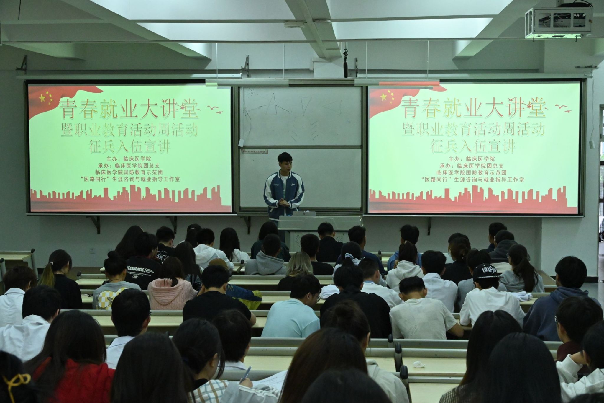 为进一步激发适龄青年的应征热情,永利yl23411集团于5月11日在经开校区1104举办“青春就业大讲堂暨职业教育活动周活动征兵入伍宣讲”。此次活动由永利yl23411集团主办,永利yl23411集团团总支、永利yl23411集团国防教育示范团及“医路同行”生涯咨询与就业指导工作室共同承办,共计182人参与其中。