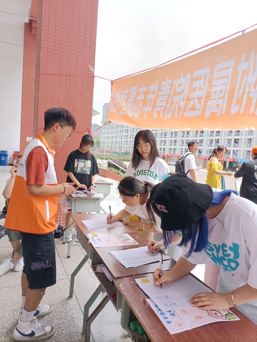 此次活动主要为雅安市流浪猫狗救助基地募捐衣物。正值军训结训,志愿者们不畏疲累与骄阳,奔赴在校园网大厅、校门口、食堂、宿舍进行宣传。整个活动过程中,每一位志愿者都面带微笑热情地接待每一个前来募捐的同学,从同学们手里有条不紊地接过捐赠服装,并一一做好记录。最终募捐外套400余件,T恤400余件,裤子300余件,共计1110余件。志愿者们认真核实登记同学的信息,发放小礼品,并将物品整理分类、打包,交予雅安市流浪动物救助站负责人。