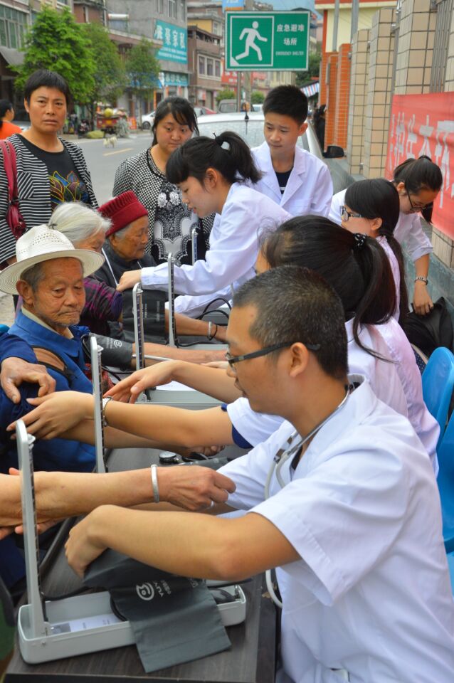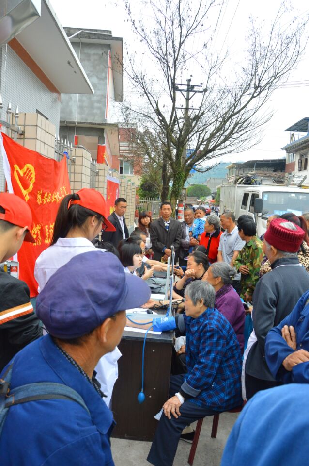 志愿者们以饱满的热情和严谨的态度分两组为雨城区孔坪乡上百位居民进行健康咨询、测量血压、推拿按摩、发送卫生知识宣传手册,重点宣传如何预防冠心病、高血压、糖尿病、手足口病等疾病的发生,以及发生后的应对办法。