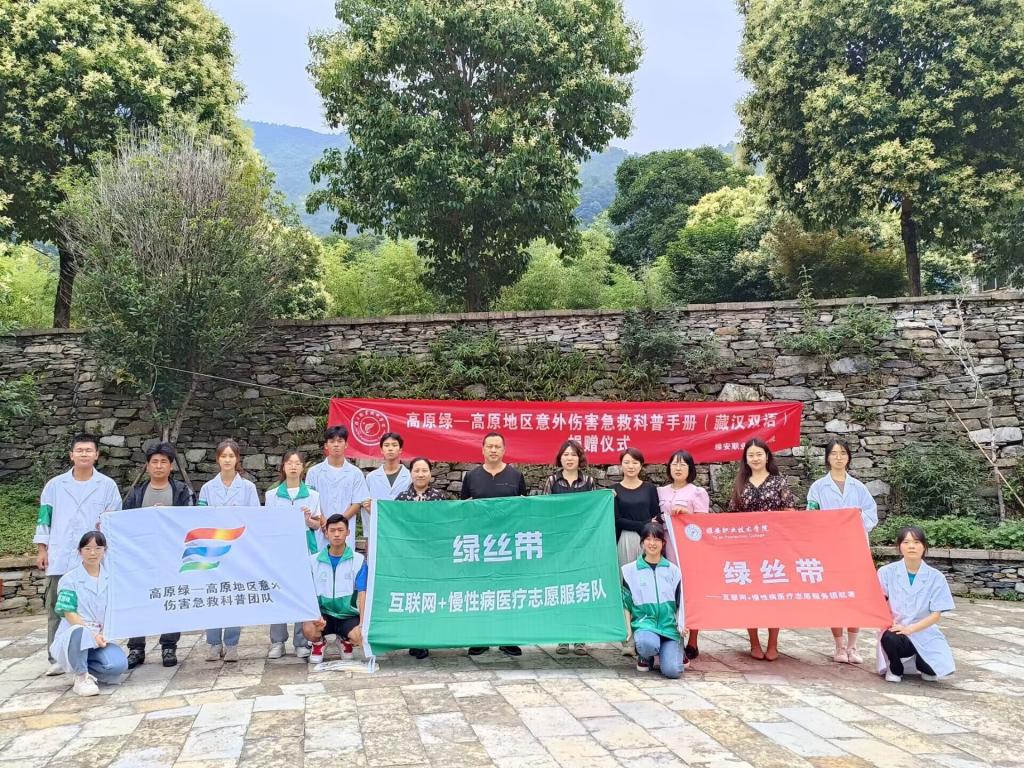 活动开始,徐海凤向村民讲解了此行的目的和意义,完成了永利yl23411集团官网入口“乡村振兴”实践基地的授牌仪式。刘琴主持了藏汉双语急救科普手册捐赠仪式,共捐赠100本。紧接着,志愿者们向现场群众演示了常见的三种意外伤害急救办法,群众反应热烈且给予充分肯定。