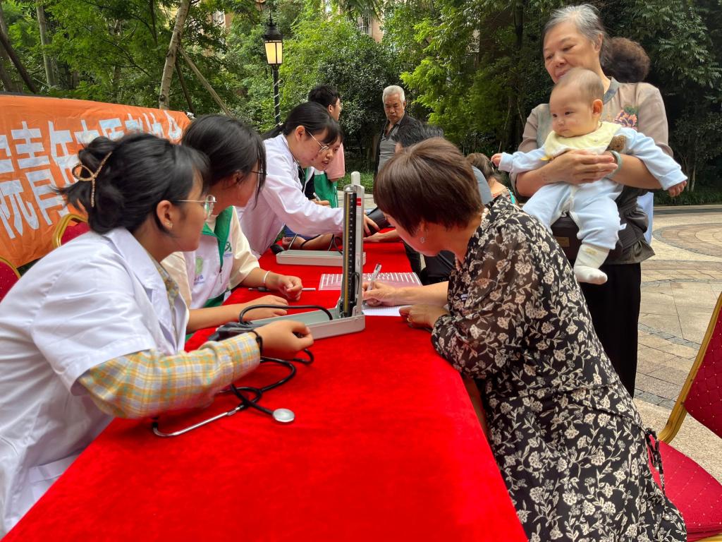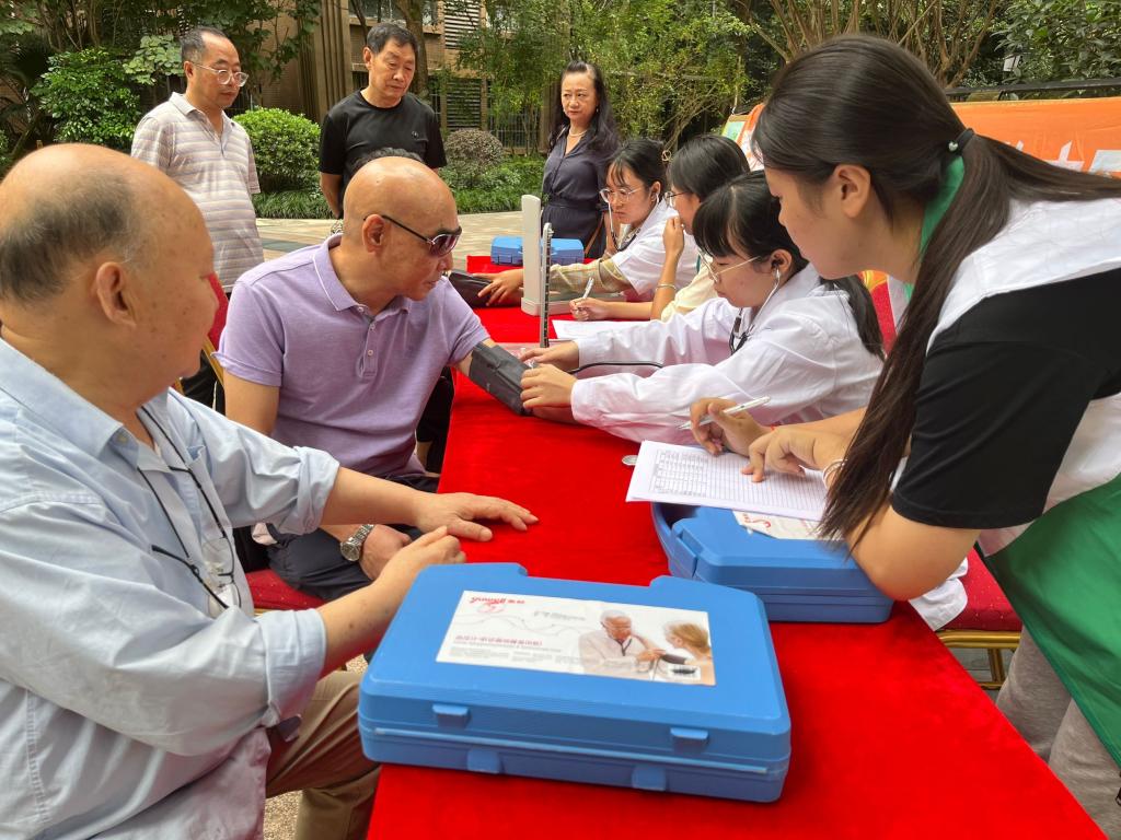 为了帮助社区中老年人对高血压疾病的认知、提高对慢性病的预防。9月22日,永利yl23411集团团总支书记徐海凤带领普专临床医学22-3团支部10名志愿者在雅安市雨城区恒信上海城开展“高血压义诊入社区”志愿服务活动。