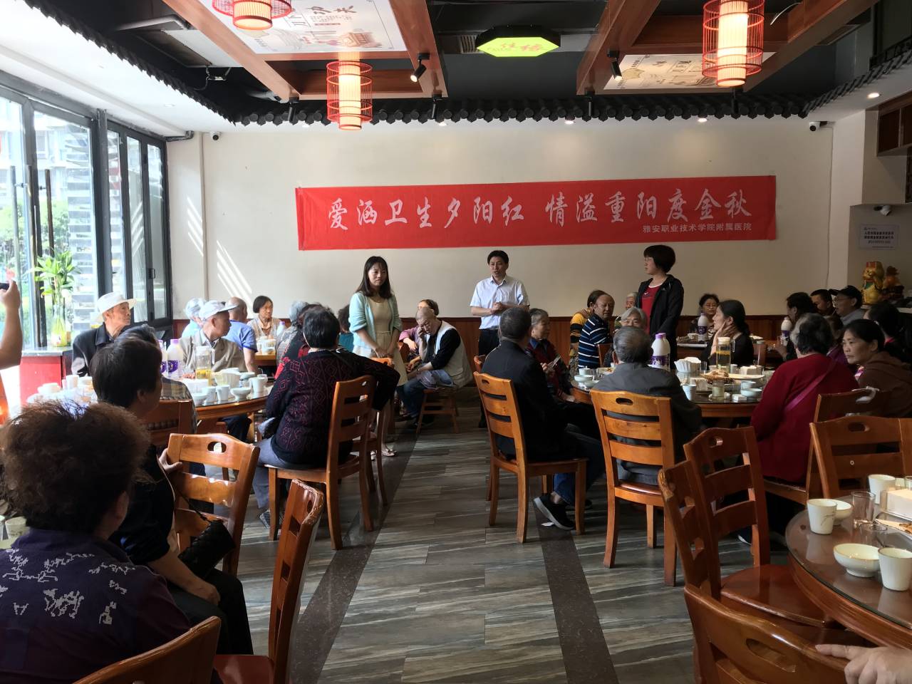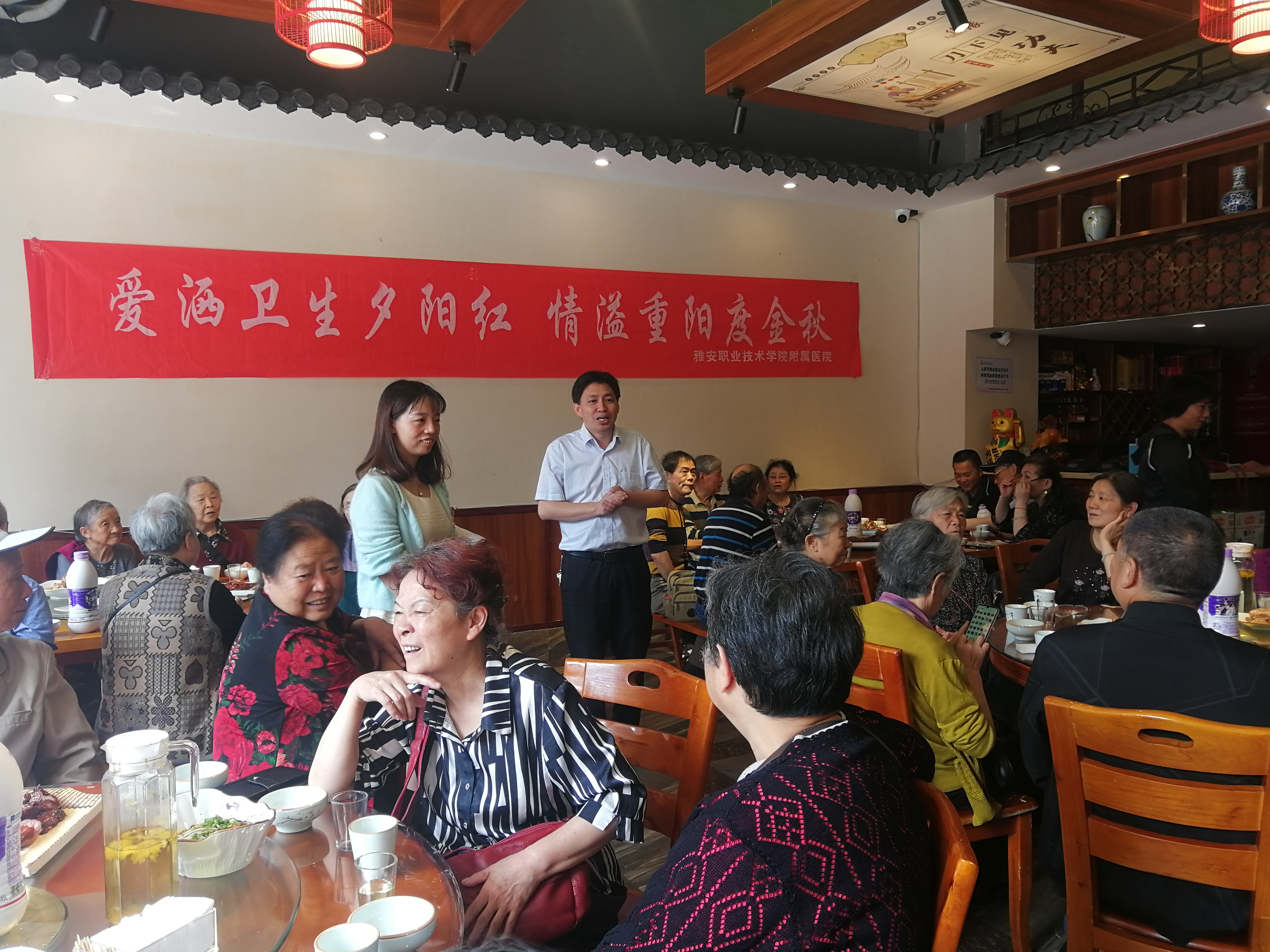 又是一年桂花飘香的季节,在重阳节即将到来之际,为弘扬中华民族敬老、爱老、助老的传统美德,营造重阳节的节日氛围,感恩前辈们的为公司和医院发展的辛勤付出,9月27日中午,永利yl23411集团举办了庆祝重阳节活动,副书记李敏、副经理李本全、组织人事科科长赵燕、张蓝老师和70余名退休老前辈们欢聚一堂,共度重阳佳节。