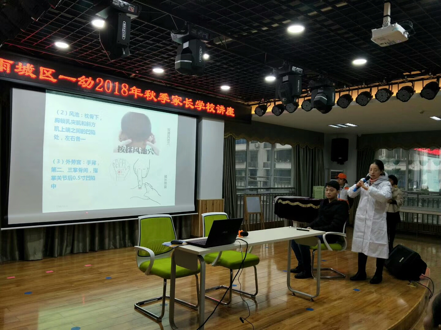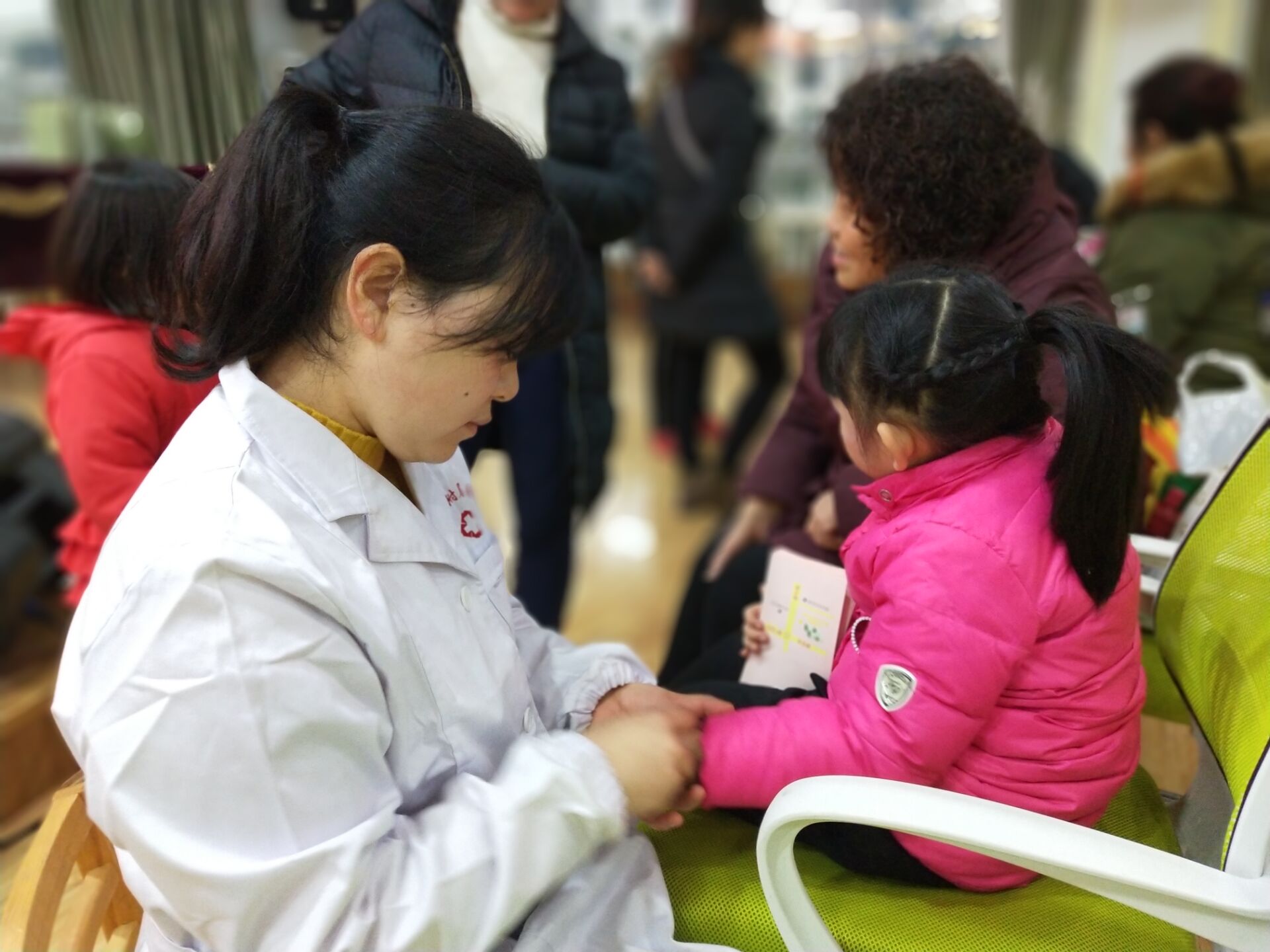 为进一步推广和普及小儿推拿,提升广大家长朋友们的育儿知识,使小朋友们健康快乐地成长。12月14日,公司党总支副书记李敏老师带领医院4位小儿推拿师和5名员工志愿者,在雨城一幼中信园区开展了小儿推拿专题讲座和义诊活动。幼儿园家长及老师约100余人参加,讲座由幼儿园田川园长主持。