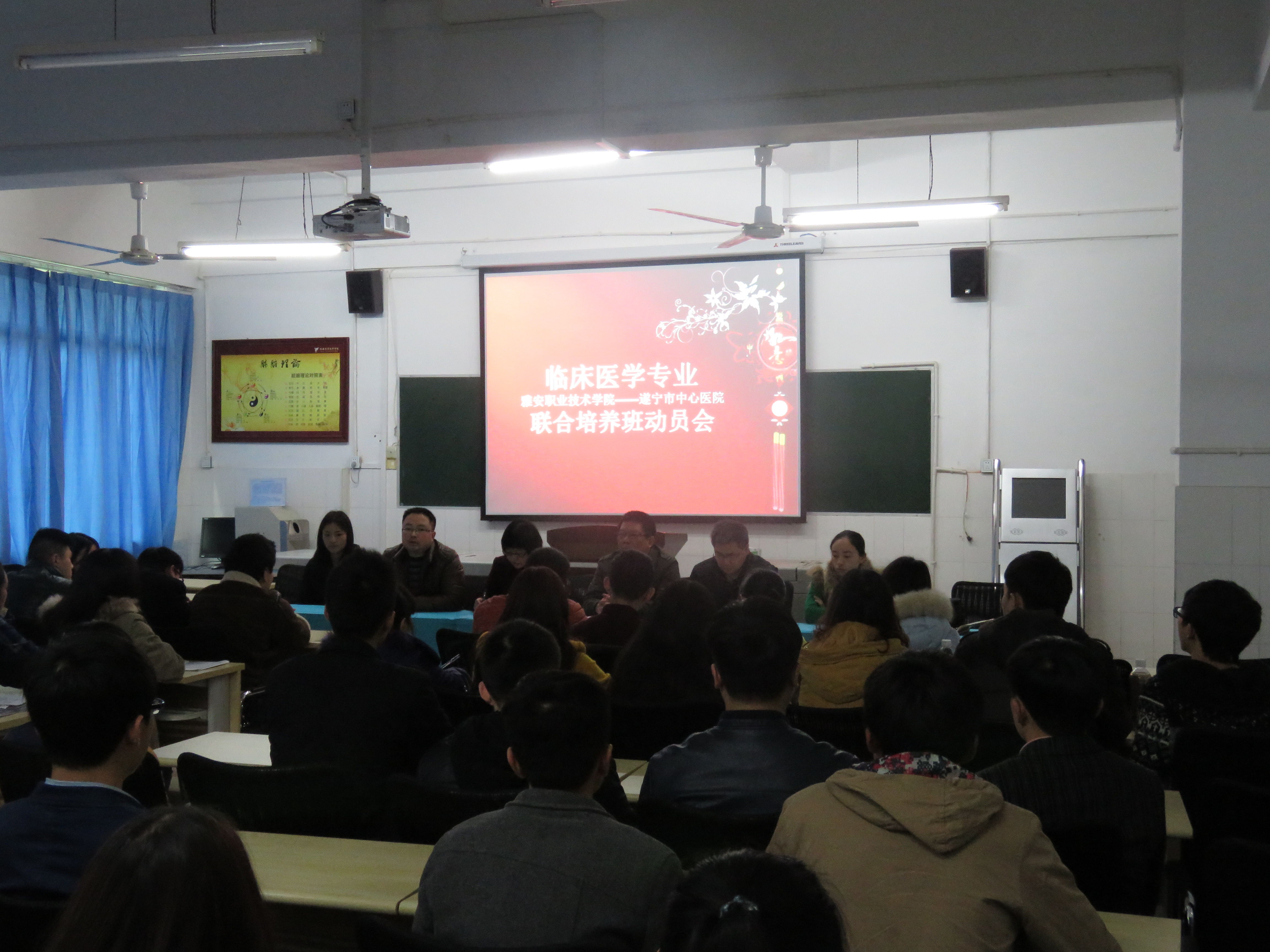 3月10日下午,临床医学专业与遂宁市中心医院联合办学班动员会在育才路校区实408召开。动员会上,员工处处长王伟才、医学系主任薛正毅、医学系党支部书记祝继英等分别从组织纪律、安全、一体化学习、精神作风等方面做了精彩的动员。通过动员,同学们表示要珍惜学习的机会,遵纪团结、刻苦学习,为自己的人生生涯添加浓墨重彩的一笔。