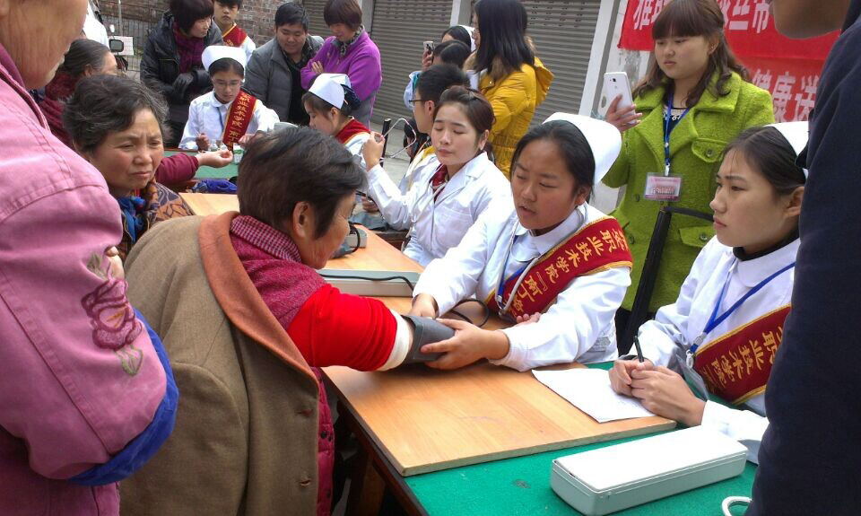 12月16日下午,恰逢冬日暖阳,医学系联合组织部、护理系组成医疗志愿服务队,在护理系党支部书记郭英才、团总支书陈静、医学系团总支副书记卫宁和组织部李敏等老师的带领下,来到雨城区矿建居民社区开展义诊活动。