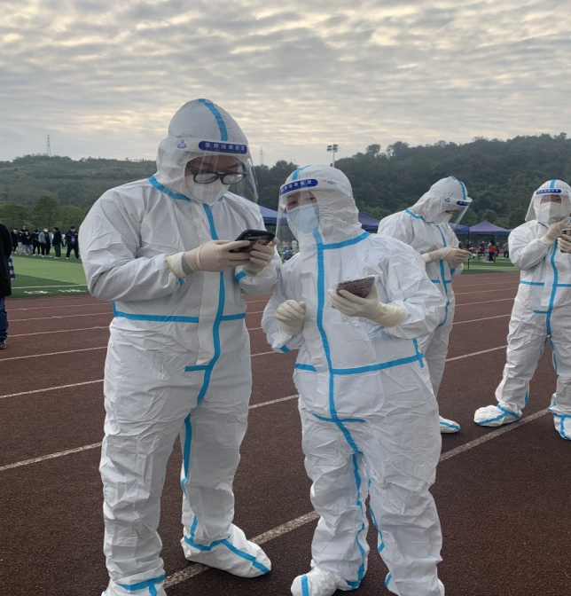 员工数量多,采集时间长,这些困难都被一一克服。为了保证员工们核酸结果的及时性,全体采样人员延迟午餐时间,几乎每天延迟到接近下午两点才分批就餐。在结束一天的校区采样工作,下午五点以后回到医院,完成因核酸采集耽误的工作,继续参与科室工作。