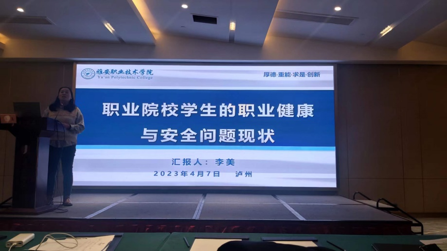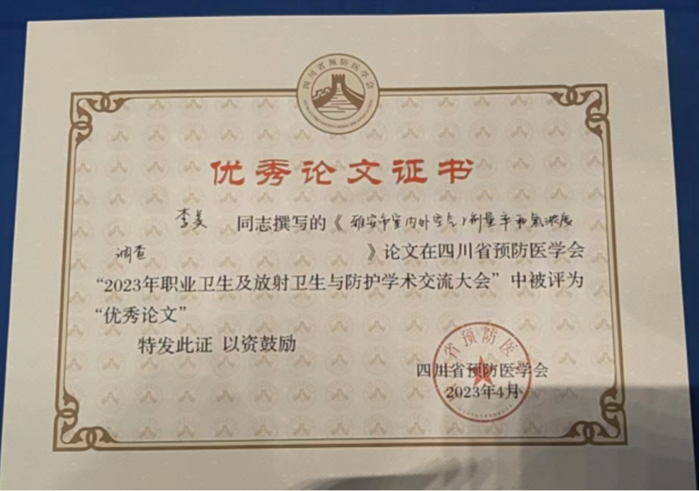 本次会议以特邀专家报告、分会场论文报告、优秀论文评选、论文集交流和企业布展等形式,深入地开展学术交流。其中陈跃主任医师针对“核医学发展与思考”,孙全富研究员就“放射卫生科学研究”,孙新研究员围绕“新时期职业卫生研究进展与展望”,张成云主任医师以“职业卫生分类监管”为主题分别做了大会特邀专家报告。随后放射卫生与防护分会场和职业卫生分会场分别进行了专家报告和优秀论文学术交流。李美受邀在两个分会场分别就其第一作者撰写论文“雅安市室内外空气γ剂量率和氡浓度调查”和“职业院校员工的职业健康与安全问题现状”做了汇报发言,并在大会上介绍了2022年立项的四川省教育厅教育科研资助金项目“基于《职业与健康》课程标准体系构建与实施的高职院校劳动安全教育研究”。其中“雅安市室内外空气γ剂量率和氡浓度调查”被四川省预防医学会评选为“2023年职业卫生及放射卫生与防护学术交流大会”优秀论文。