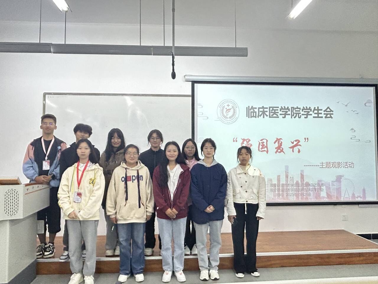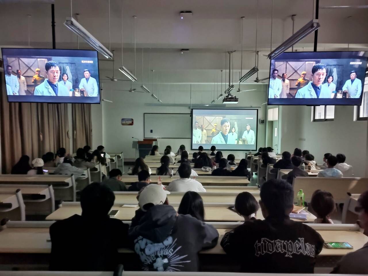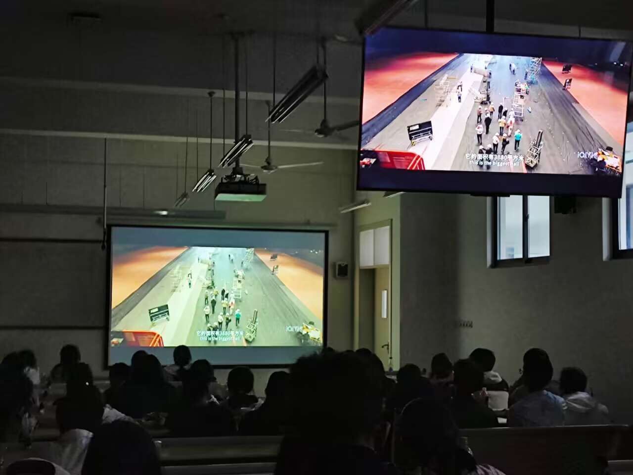 本次活动首先由工作人员组织观影人员签到,有序入座,接着同学们认真观看《我和我的祖国》和《建国大业》。天行健,君子以自强不息。中国人民用奋进奏响强国复兴的号角,用汗水与泪水谱写华章,用青春的理想筑就中国梦。“我和我的祖国,一刻也不能分割……”最后,影片在《我和我的祖国》的大合唱中落幕。