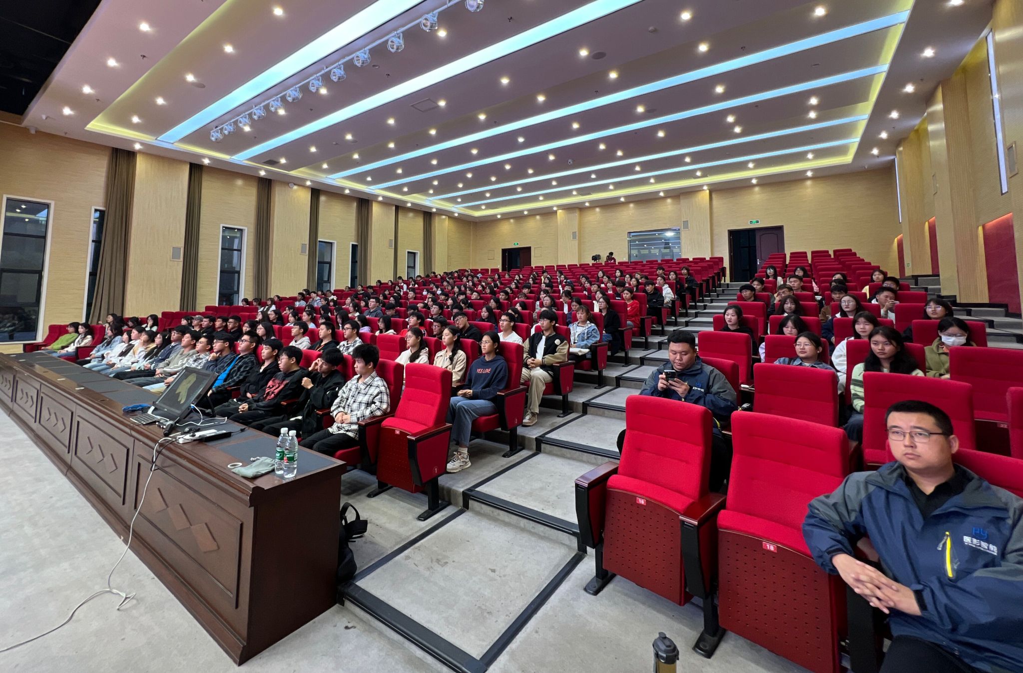 体验过程中,同学们全神贯注,热情高涨,有同学表示:“非常惊叹科技带来的震撼,这次专业介绍会形式新颖、互动性很强,加深了同学们对所学专业的认识和了解。”VR 沉浸式体验带领员工从感性到理性的过渡,让枯燥无味的实验转变成可以VR形式的交互学习。通过医学影像中心VR系统的场景和功能体验,使同学们对学习规划、就业方向、职业前景有了新的认识,同时提升了同学们的爱国情怀。
