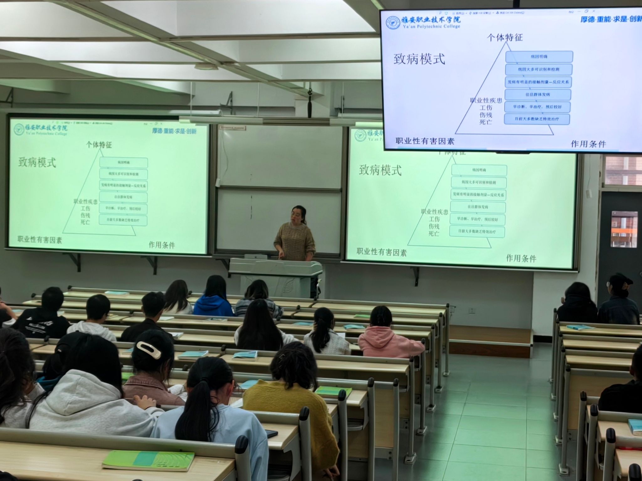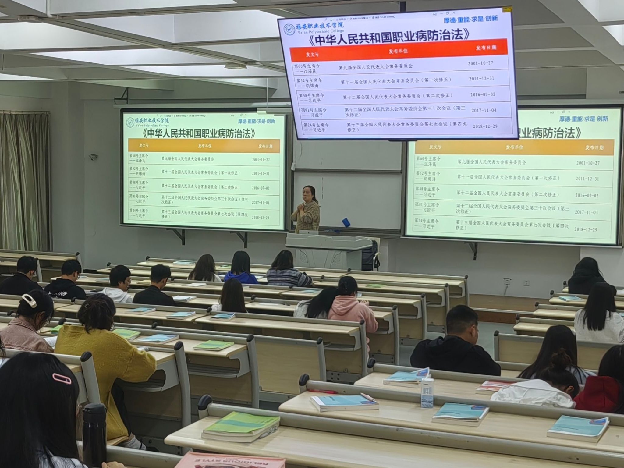为了让雅职学子深刻了解职业中存在的一些安全隐患以及应对方法。10月27日,永利yl23411集团第二课堂“职业健康与安全”讲座在经开校区1104顺利开展。永利yl23411集团第二党总支书记、教学科科长李美担任主讲人,22级同学及在场工作人员共95人参与其中。