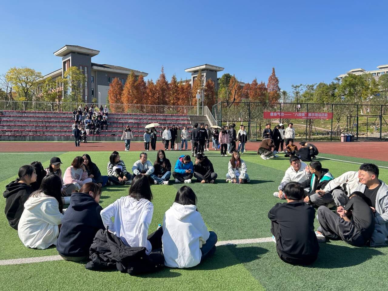 活动以团体开展心理互动小游戏的形式进行,增进同学与同学之间的关系。活动过程中,同学们自由组队开展“无敌风火轮”“背靠背”“数青蛙”等活动。这些小游戏在增强员工自信心的同时锻炼团队合作能力和沟通能力,增加团队的凝聚力。最后,所有参与人员合影留念,活动在同学们的欢声笑语中圆满结束。