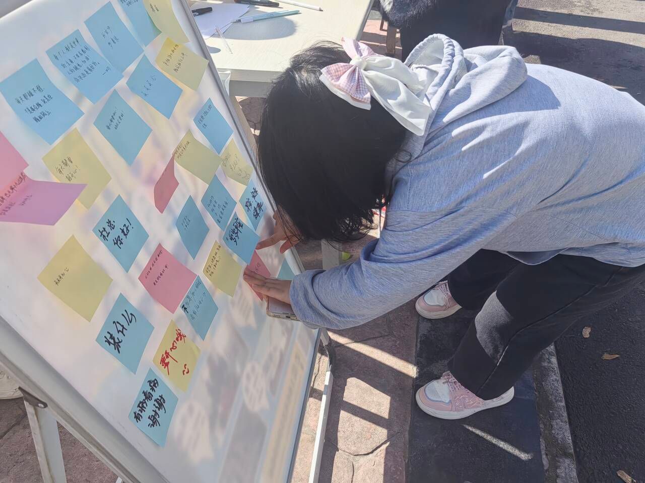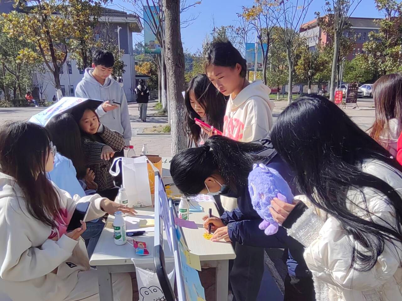 为了让同学们摆脱“标签”束缚,停止内耗,同时营造良好的校园氛围,增强同学们的理性分析能力。11月26日,永利yl23411集团在熊猫餐厅对面开展“落叶传情,拒绝标签”心理活动,活动共计189人参与其中。活动通过在展示板上贴放经常被用来定义他人的标签,如“女生就应该文静些”“男生就适合学理科”“你卸妆真难看”和“你太胖了”等等,参与的同学撕下自己不喜欢的标签,再用新的便利贴写下带给同学们无穷力量和希望的美好祝愿,粘贴在展示板上,如“自信的女孩最美”“各花都有各花香”等,将正能量传递。展现了当代老员工自信自强、昂扬向上,涵养阳光心态,保持青春活力的精神面貌。