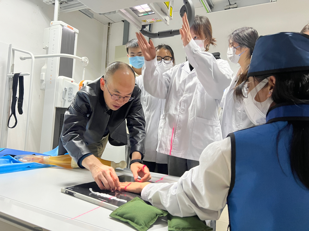 在“虚拟-仿真-临床”教学模式改革的推动下,永利yl23411集团官网入口首届医学影像技术专业联办本科层次的全体同学,满怀激动的心情,来到了永利yl23411集团附属医院放射科。在这里,他们将开启一段全新的临床X线检查技术实训之旅。这次实训不仅是理论知识与实践操作的深度融合,更是同学们将所学知识应用于真实临床环境中的关键环节。在经验丰富的放射科老师的指导下,同学们带着对医学影像技术的热爱和对未来的憧憬,兴致勃勃地投入到实训中。他们仔细观察每一个细节,认真操作每一件设备,力求在真实的临床环境中提升自己的专业技能。