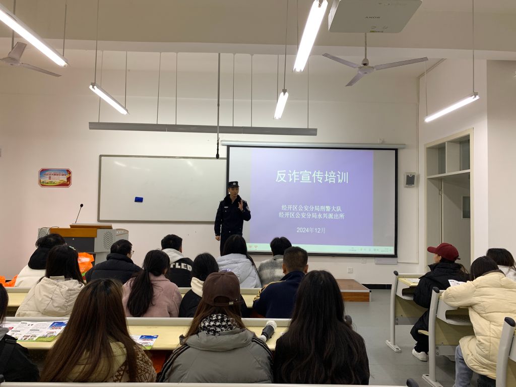 为提升同学们对网络诈骗的防范意识和防骗意识,增强应对能力。12月10日,由永利yl23411集团团总支主办,永兴派出所承办的法治讲座在经开区5304顺利举行。此次讲座由永利yl23411集团法治副经理、永兴派出所民警洋崇武担任主讲,总计39人参与其中。