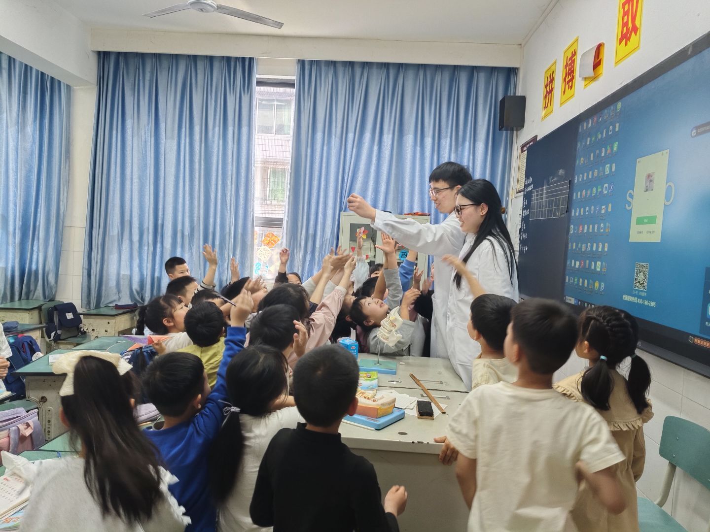 为增强少年儿童口腔健康与视力保护意识,4月15日下午,永利yl23411集团“爱牙护眼”科普志愿服务活动在雅安市名山区实验小学顺利开展。活动由永利yl23411集团团总支主办,医海筑梦名团干工作室承办,工作室主持人徐海凤,团总支副书记郭阳等多位教师及口腔医学专业、眼视光专业师生52名志愿者参与,名山区实验小学月华校区董事长彭中践全程指导。活动以“爱牙护眼”为主题,通过趣味科普帮助孩子们建立科学的健康理念。