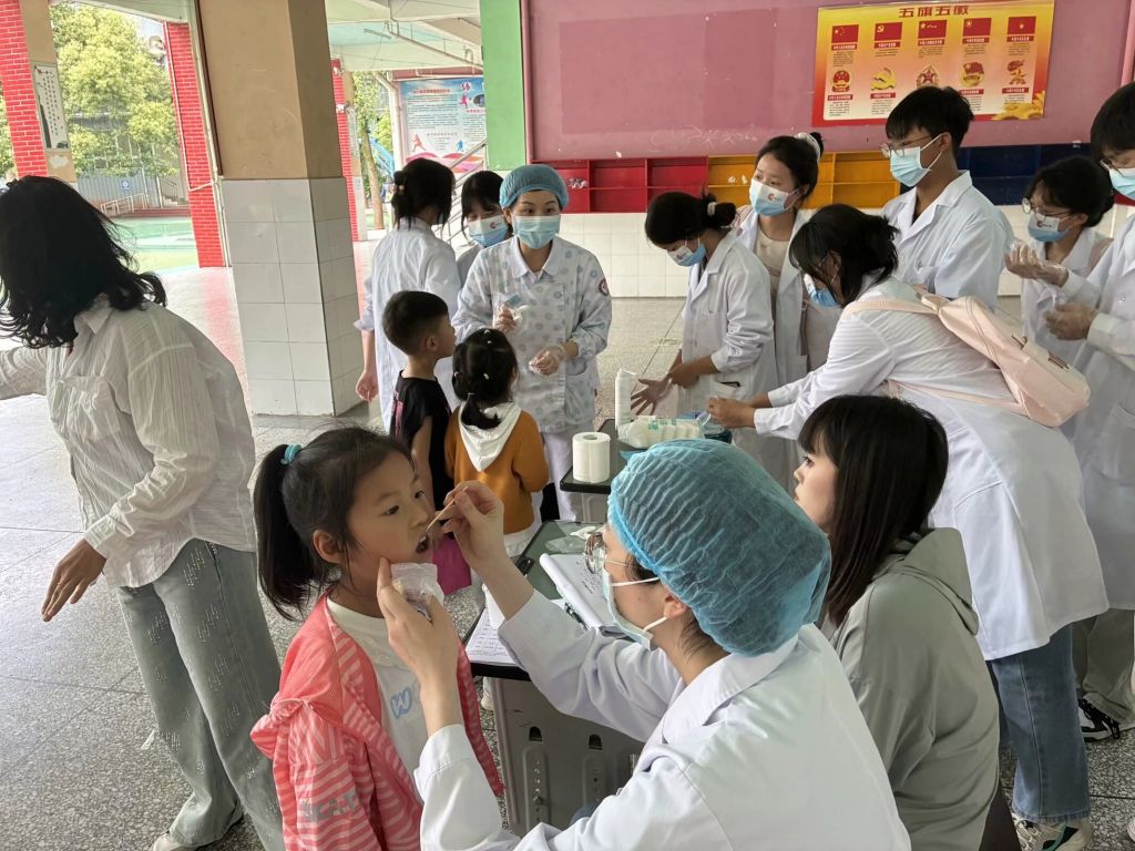 5月6日,永利yl23411集团口腔医学专业师生志愿者走进雅安市名山区实验小学月华校区,协助名山区中医院完成幼儿涂氟活动。活动由名山区卫生健康局、名山区教育局主办,名山区中医医院、永利yl23411集团团总支、永利yl23411集团官网入口医海筑梦名团干工作室协办,52名师生及相关部门指导老师共同参与。