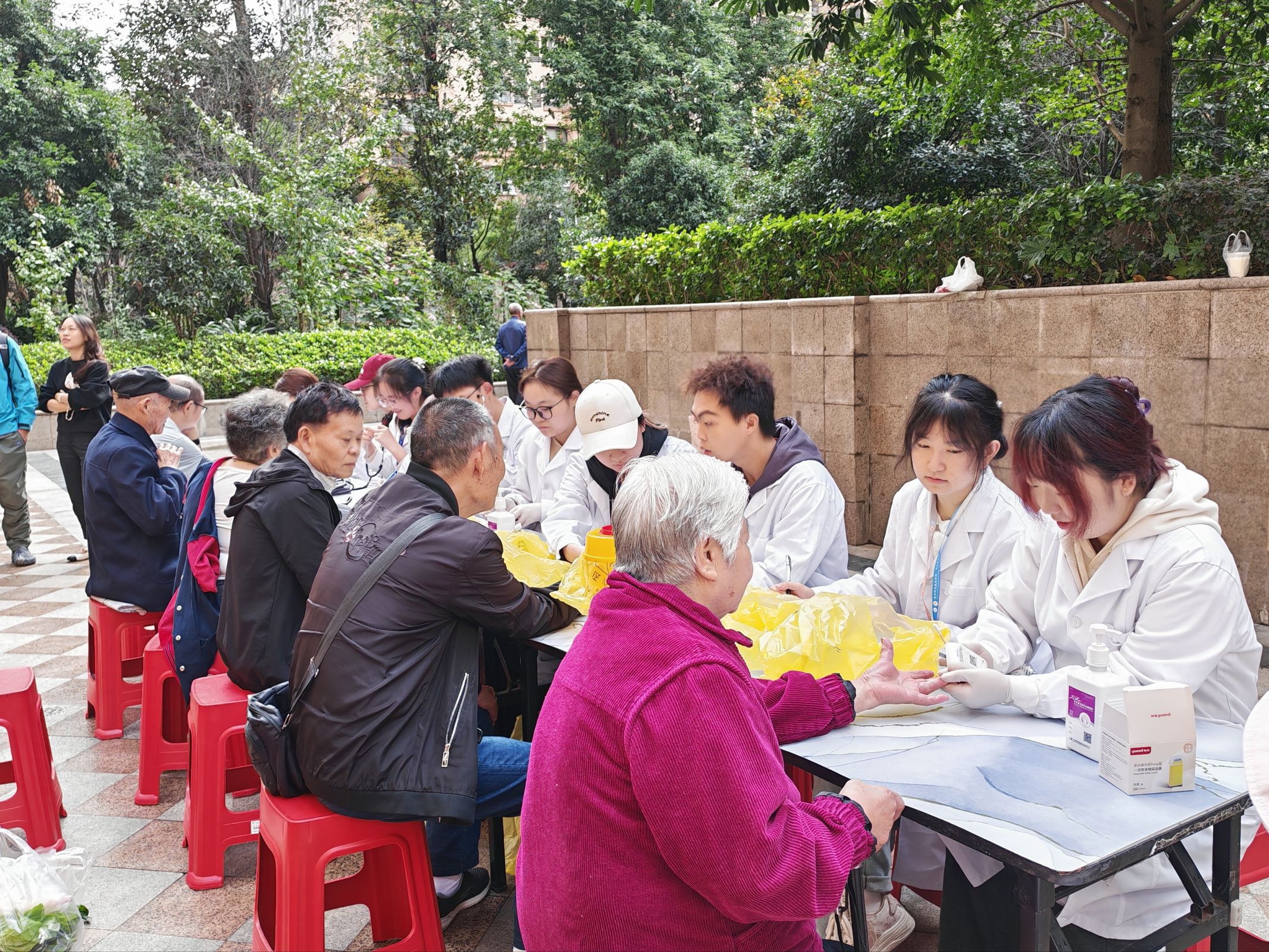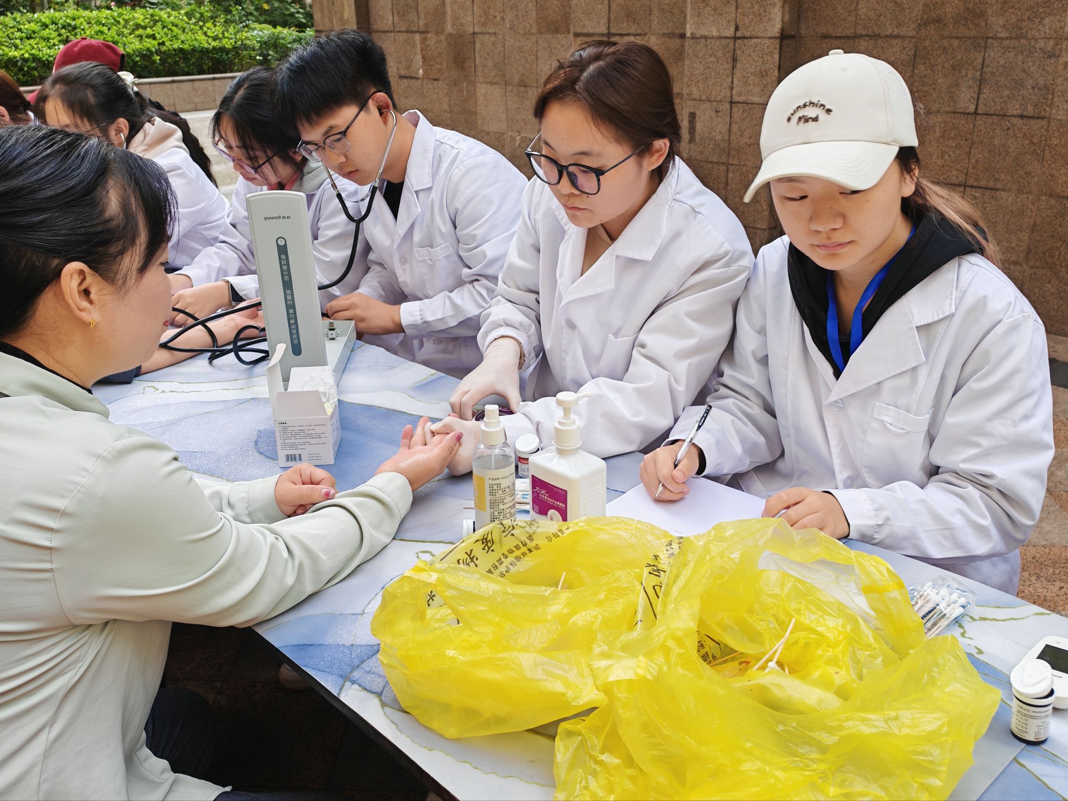 10月18日,永利yl23411集团青志协慢性病管理健康志愿服务活动在恒信·上海城开展。活动由严一峰、武亿、欧阳芳芳三位老师带队,附属医院医生李富强现场答疑,26名“绿丝带”志愿者分工合作,活动吸引250名居民参与,其中130人测血压、120人测血糖。