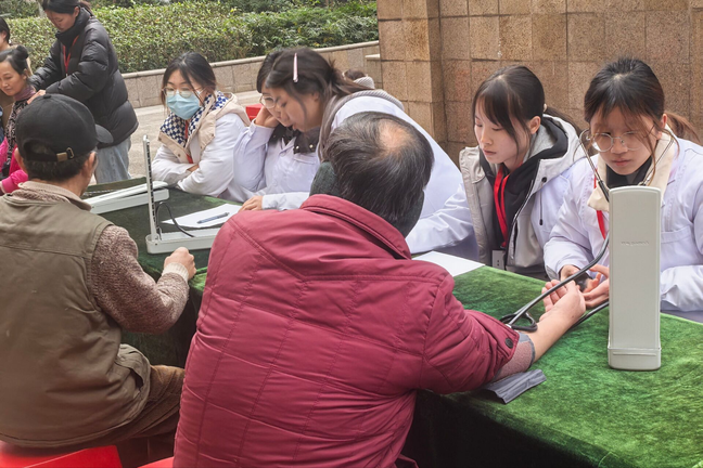 是义诊摊儿上的“笨笨老己”——测血糖时捏着采血笔半天不敢下针,量血压时盯着水银柱眼都不敢眨,被大爷大妈追着问“血糖高咋整”,慌得赶紧扒拉随身笔记现学现卖。可哪怕手忙脚乱,递上消毒棉片时那句“小年轻怪细心”,也能让所有忙碌都变得值得。活动结束后收到的社区爷爷手写感谢信,娟秀字迹里的肯定与感谢,不仅是对付出的嘉奖,更让我读懂了医员工的责任与荣光。