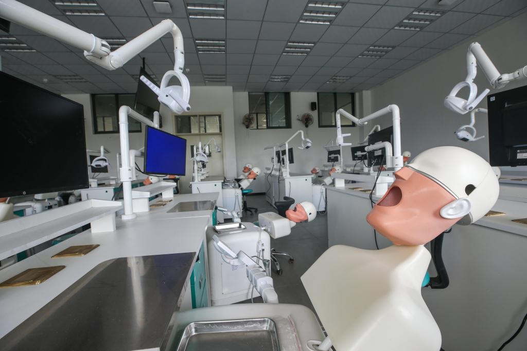 本专业现设有口腔技工实训室、口腔模型加工制造实训室、牙体形态与排列实训室、口腔临床实训室、口腔仿真头模实训室等专业课实训室5间,能全面满足口腔医学专业专业课程实验实训教学,实验实训课开出率达100%。