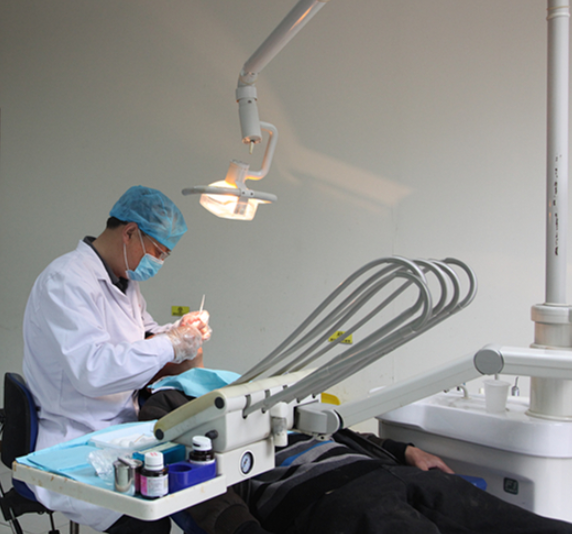 在完成教研任务的同时,全面拓展口腔科临床业务,教研室教师每年接诊约7000多人次的口腔疾病患者。目前教研室建有省内一流的口腔医学实训中心,附属医院口腔科拥有先进的口腔综合治疗仪5台,根管治疗仪、ProMax数字化口腔全景机,高清晰数字牙X光片机。科室专业设置包括:口腔内科、口腔颌面外科、口腔修复科、口腔正畸科、口腔预防保健和口腔医学美容。开展治疗项目有:颌骨骨折内固定术、口腔黏膜囊肿摘除术、根管治疗、儿童窝沟封闭治疗和牙周病治疗等。常规开展的修复特色项目有:前牙全瓷冠、烤瓷冠美容修复;后牙嵌体、冠、固定桥和活动义齿、全口义齿的功能修复;前牙美容和咬合重建修复;套筒冠、磁性附着体等精密义齿修复;和颌面外科合作开展种植义齿修复等。正畸特色项目:固定正畸技术一直处于雅安先进水平。是雅安市唯一取得美容牙科主诊职业医师上岗证资格的口腔科门诊,也是最早开展金属烤瓷全冠、种植牙新技术,其中根管治疗术、种植牙技术在雅安市处于先进水平。现在率先在雅安开展激光微创手术,可用于切除口腔黏膜囊肿、龈瘤、舌系带等较传统手术切除创面小,出血少恢复快,大大减轻病人痛苦。