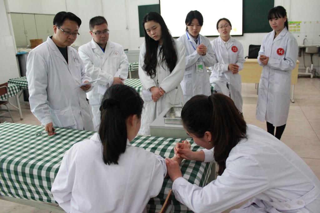 医学系为响应公司职业教育活动周的开展,在医员工中倡导具备扎实的理论基础和娴熟的操作技能氛围,于4月5日下午在育才路校区医师技能实训中心的针灸实训室和推拿实训室, 举办了第三届针灸推拿技能大赛。医学系副主任杨志伟、医学系党支部副书记张翅、团总支书记赵武博、团总支副书记张晓惜、中医教研室主任孟伟,教师马铃玉以及学管干事杨芳和20名参赛员工一起出席了大赛的启动仪式。