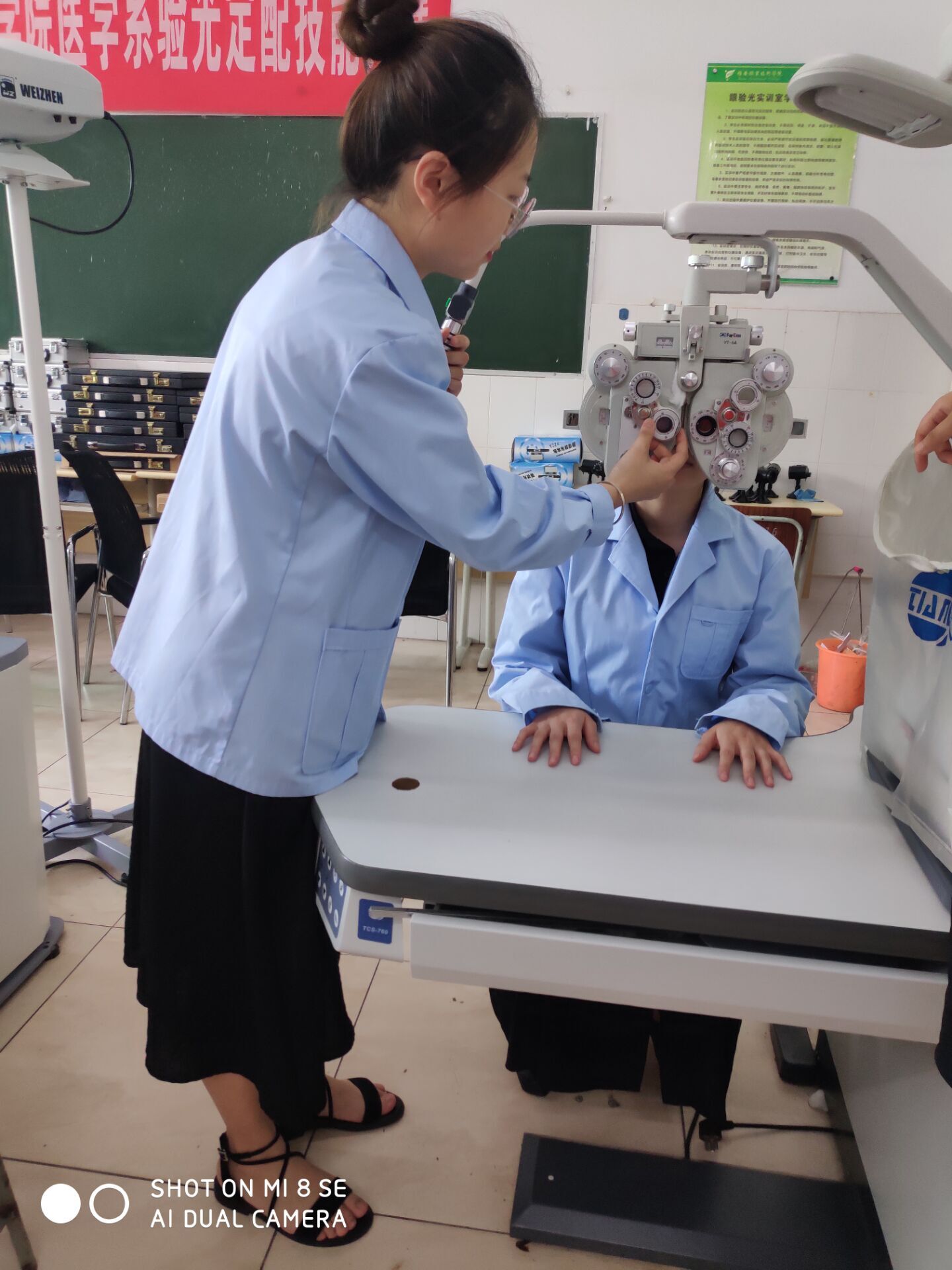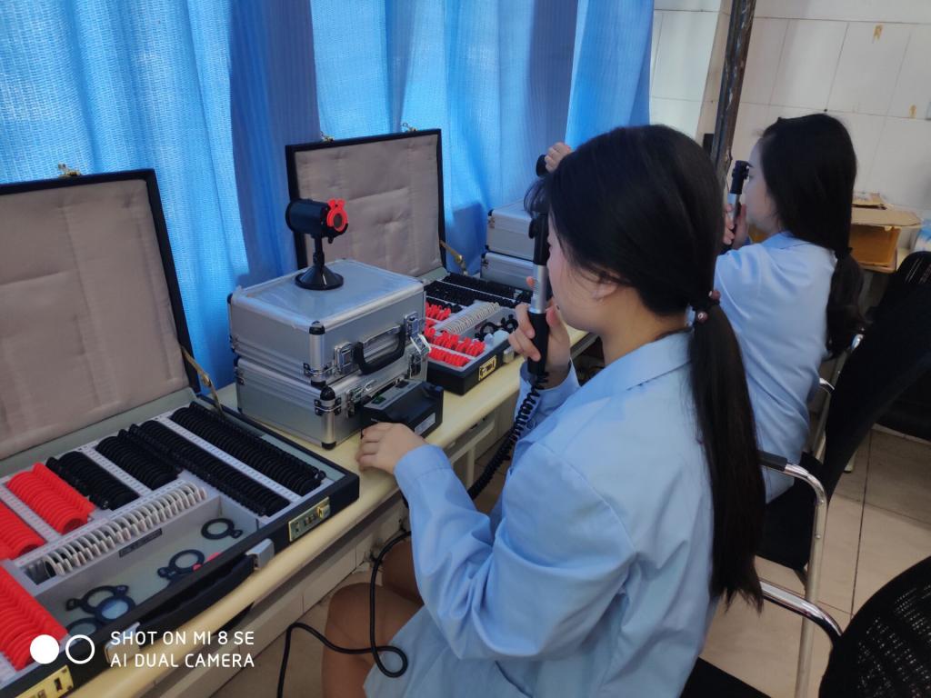 为全面提高医员工综合能力的培养,展示人才风貌。永利yl23411集团(附属医院)眼视光技术专业于6月4日在育才路校区实训楼104和106开展了技能大赛。本次大赛涉及6个专业项目:裂隙灯检查、综合验光仪检查、电脑验光仪检查、检影验光、眼屈光实验、眼镜的定配。比赛评委由专业教师王丹、郝贝贝、叶秀春和倪韬老师担任。