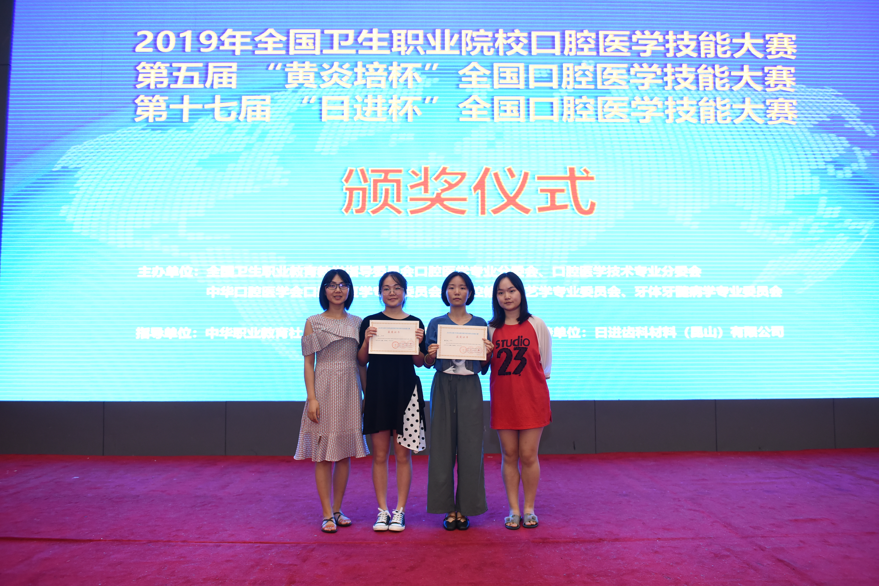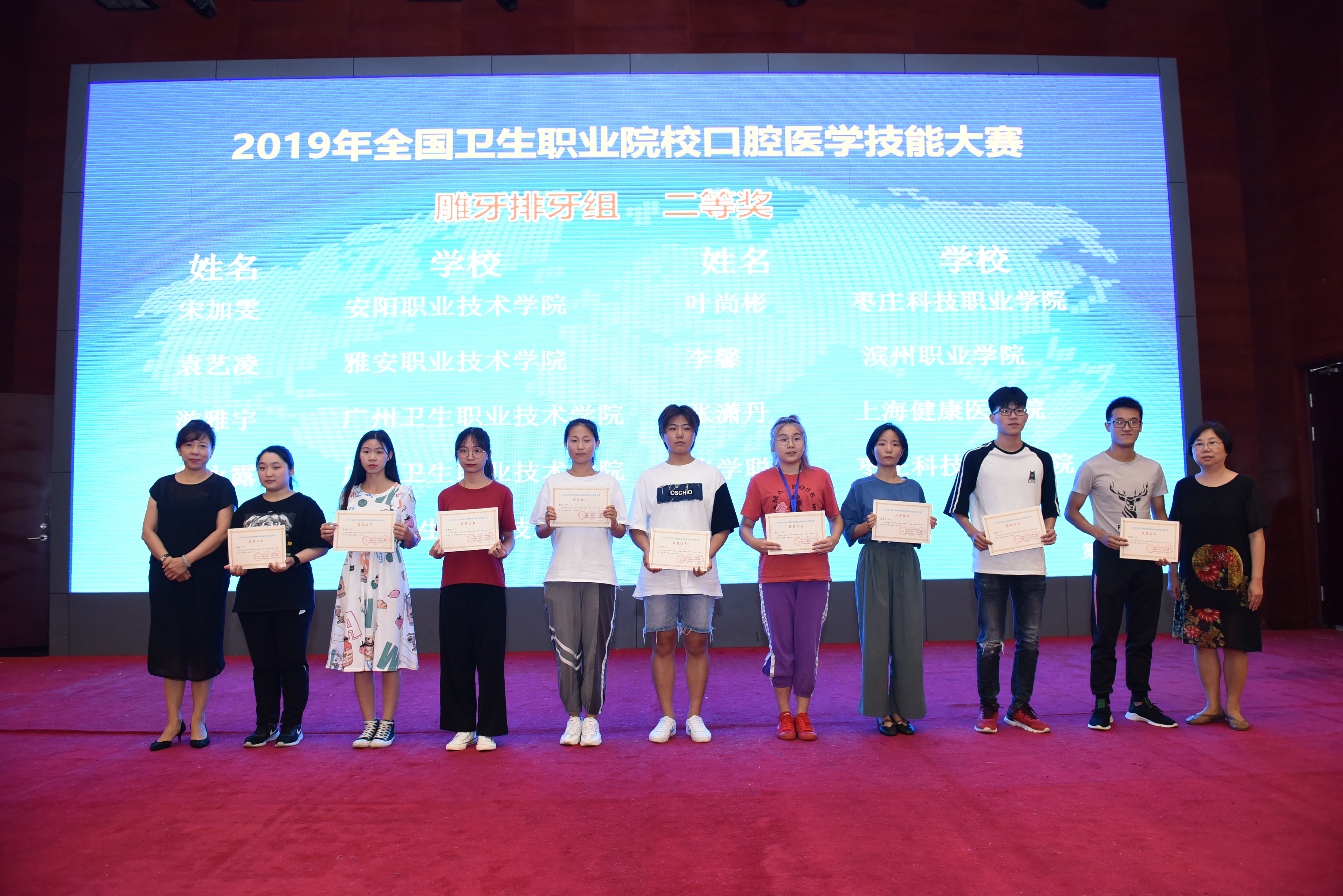 该技能大赛是目前国内规模最大、最具影响力的口腔技能竞赛。公司高度重视本次大赛,组建参赛团队,筹划参赛方案。由永利yl23411集团赵巍、肖维杰老师带队,2017级口腔医学技术、口腔医学专业共四名员工参加了比赛。经过激烈角逐,公司参赛选手以扎实的基础知识和精湛的技能在赛场上脱颖而出,其中袁艺凌同学荣获了雕牙排牙组二等奖,杨欢同学荣获了雕牙排牙组三等奖。