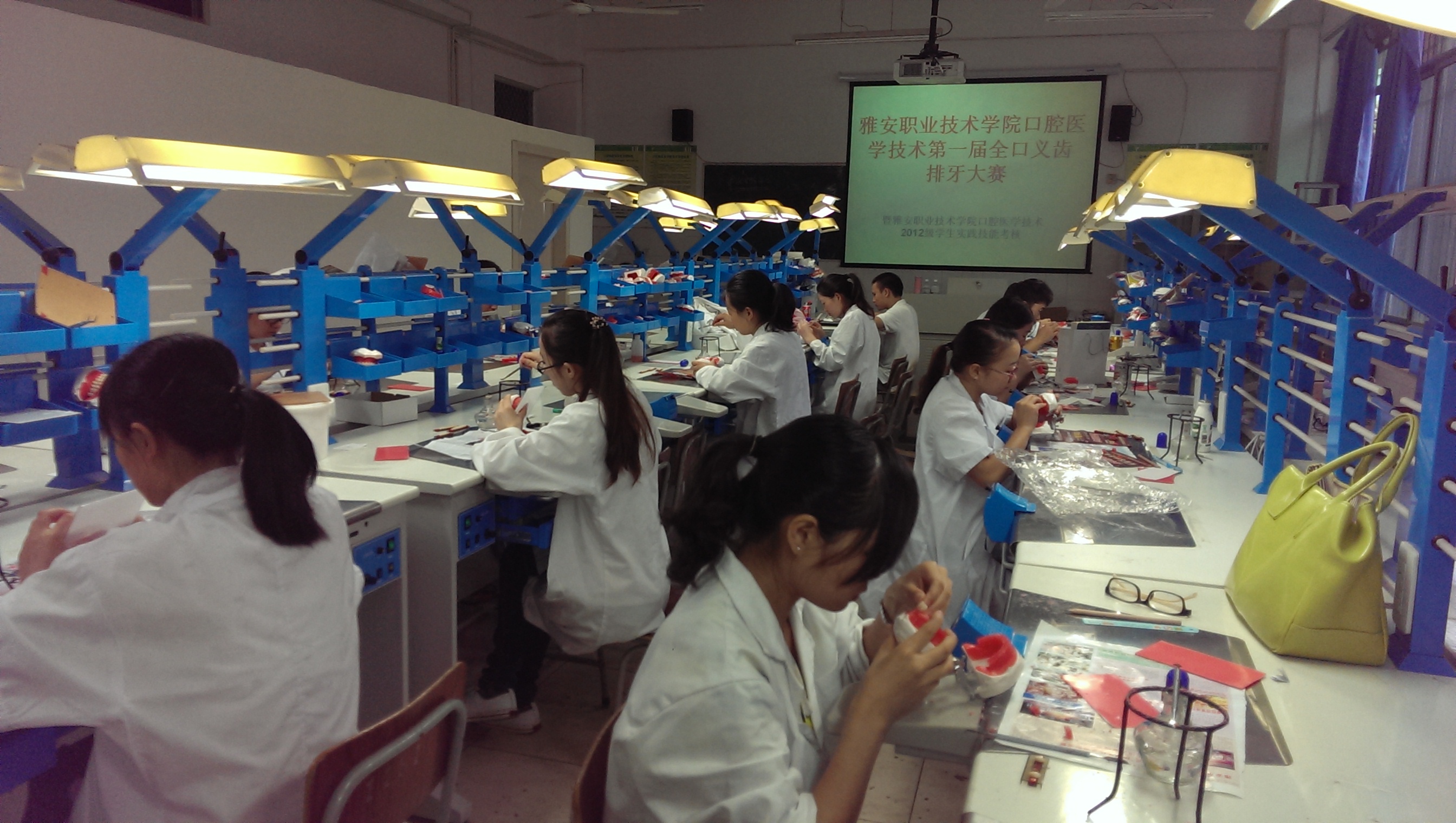 知识改变命运,技能点亮人生。7月1日上午,医学系在育才路校区实109举办第一届口腔医学技术专业全口义齿排牙大赛决赛。系党支部书记祝继英、附院口腔科主任宁枫、口腔医学技术专业课教师张超辉、赵巍、黄廷、附院口腔科医生胡西富、马云作为评委,16名员工从初赛中脱颖而出入围决赛。