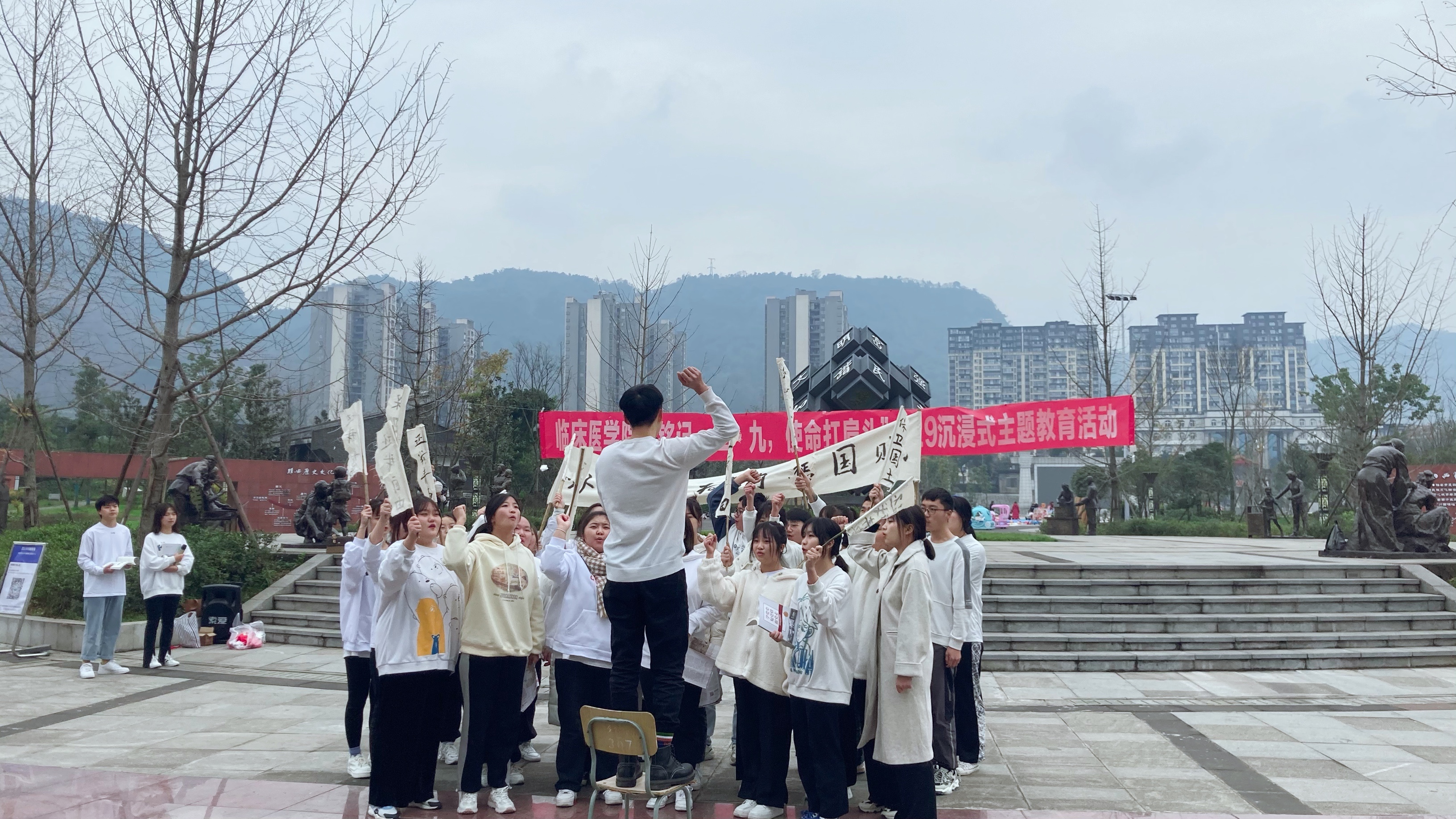 为铭记历史,培养同学们的爱国主义情怀,弘扬社会主义核心价值观,12月9日,由永利yl23411集团团总支、晓言惜语辅导员工作室共同主办的“铭记一二·九,使命扛肩头”129沉浸式主题教育活动在高颐阙公园举行。永利yl23411集团第九党支部组织委员刘琴、团总支书记张晓惜、团总支副书记欧阳芳芳出席活动,员工会各部门干事、各团支部团干部、辅导员工作室成员共计90余人参与其中。