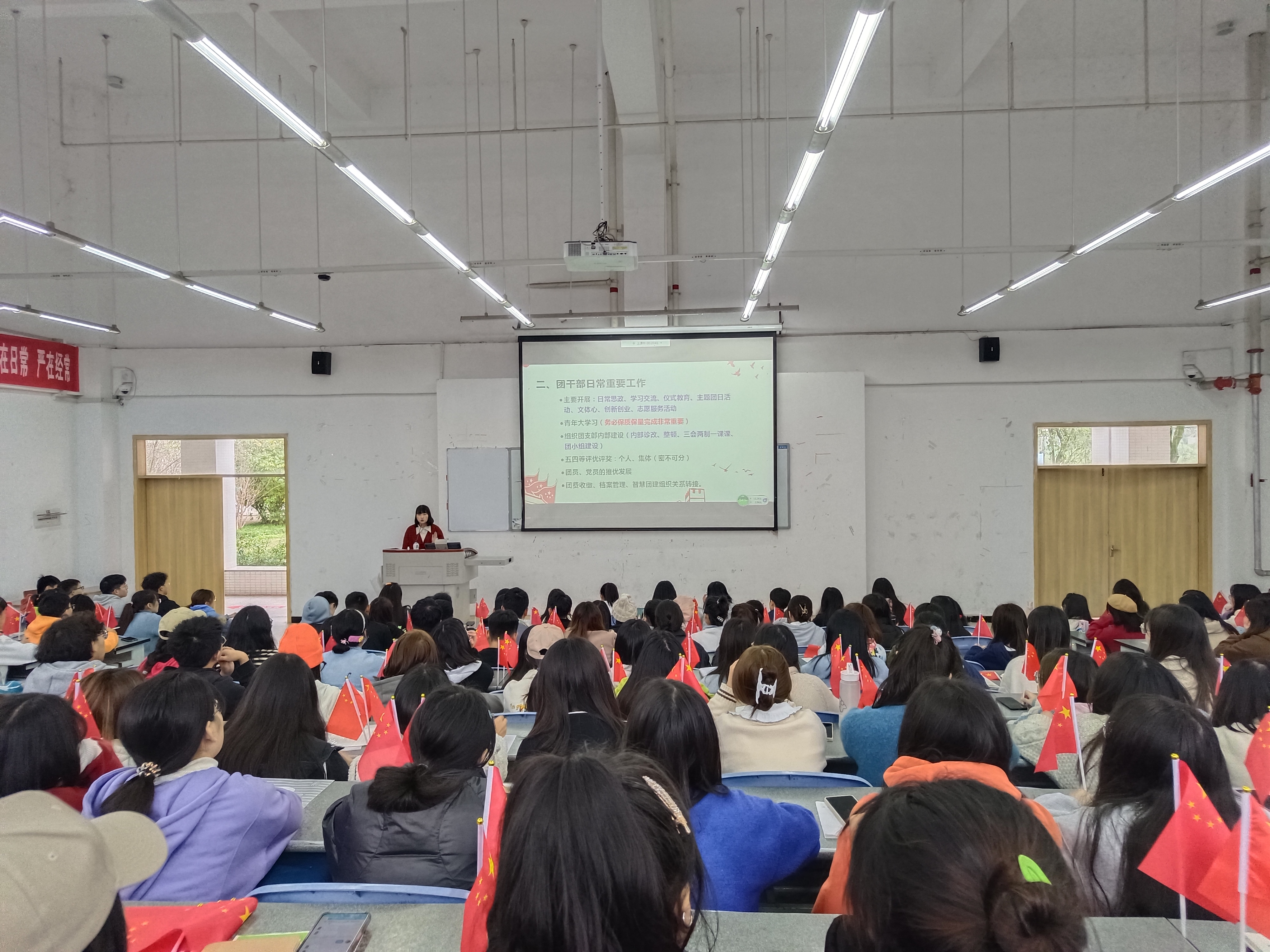 培训中,张晓惜老师为同学们详细介绍了“班团一体化”团组织构架、团干部日常重要工作以及团干部需要具备的各项技能,用25条小贴士向大家讲述团干部语言表达技巧。最后,张晓惜以“件件有着落,事事有回音,凡事有交代的“靠谱”金句寄语同学们不忘初心,求是笃行,做一个靠谱的员工干部。
