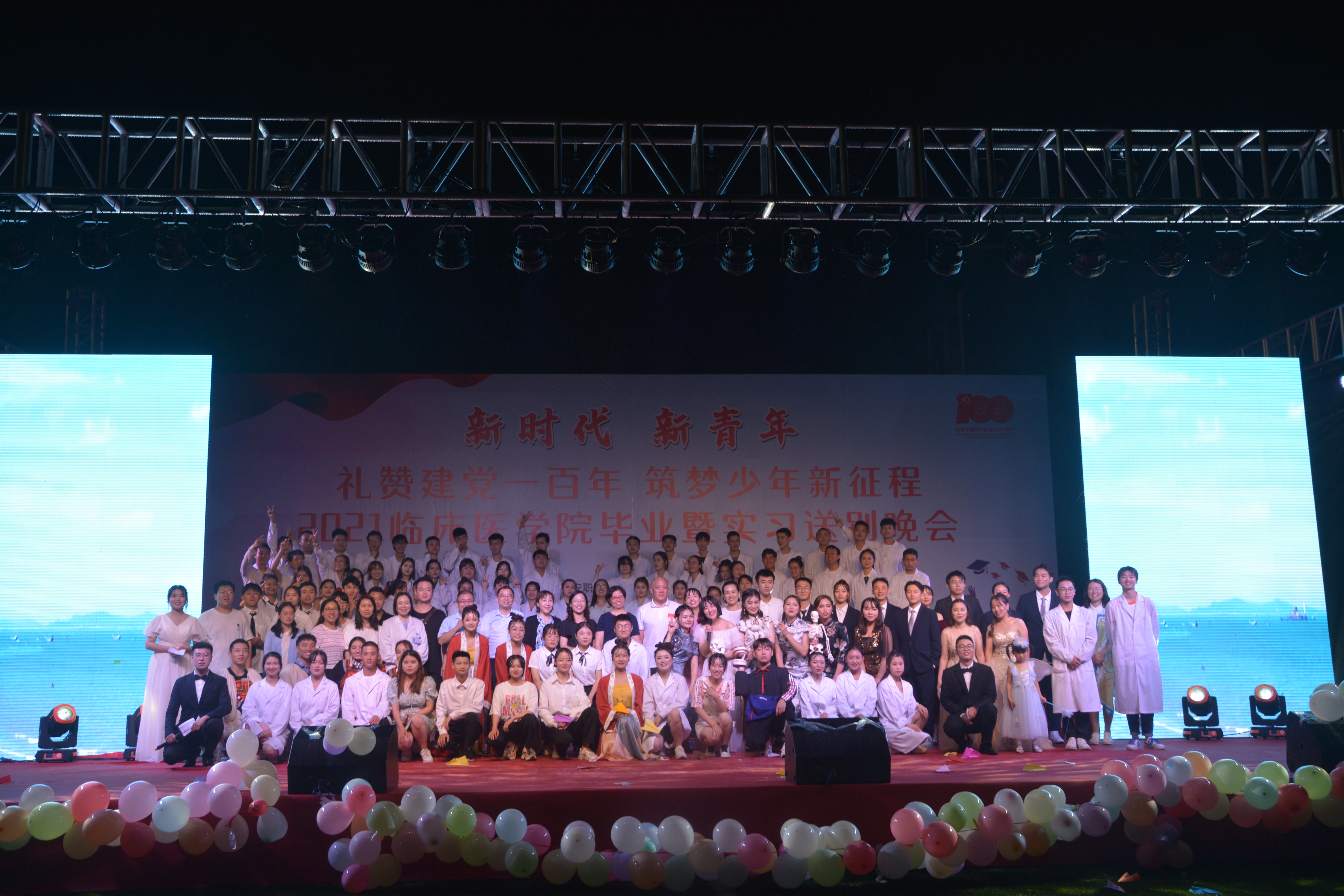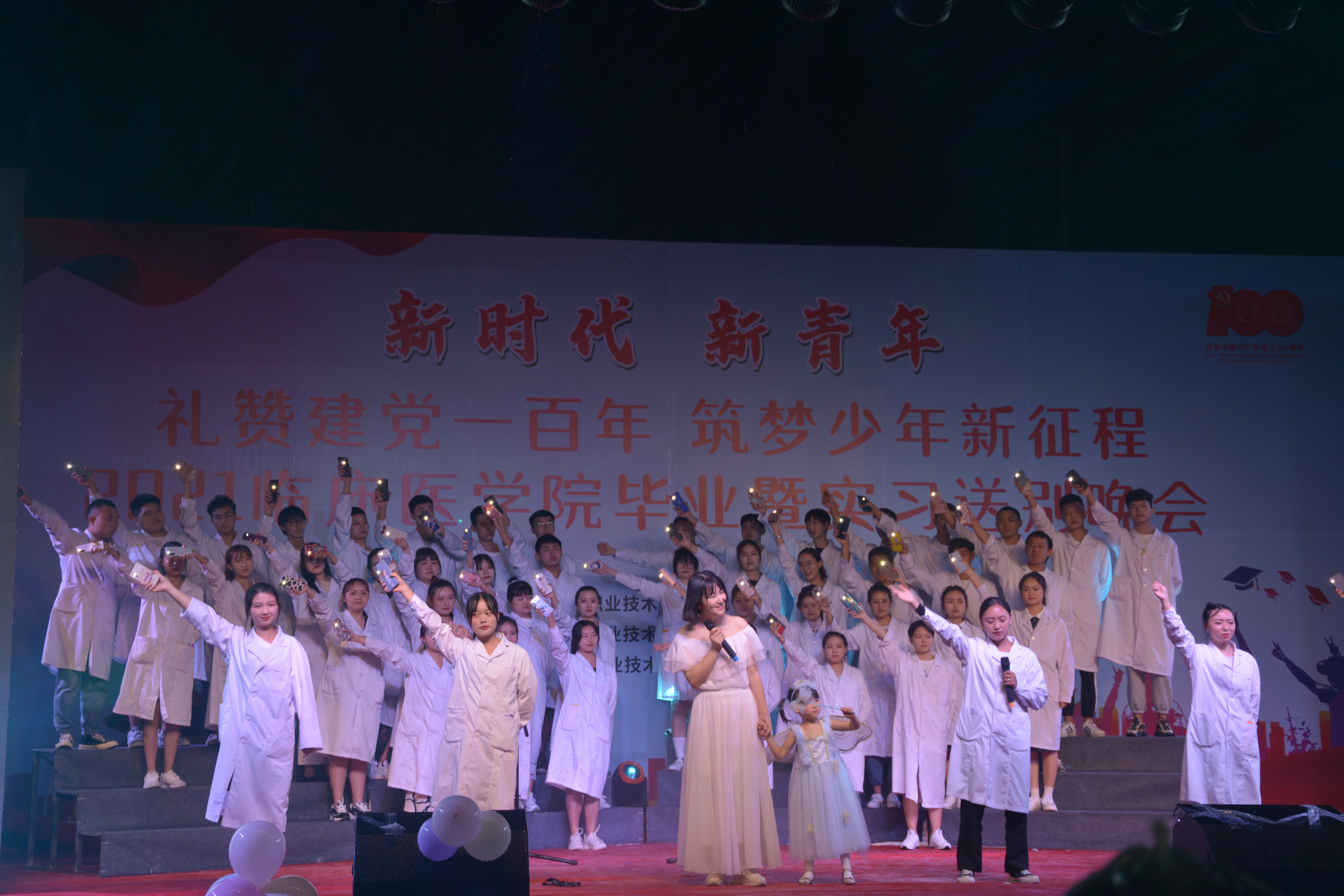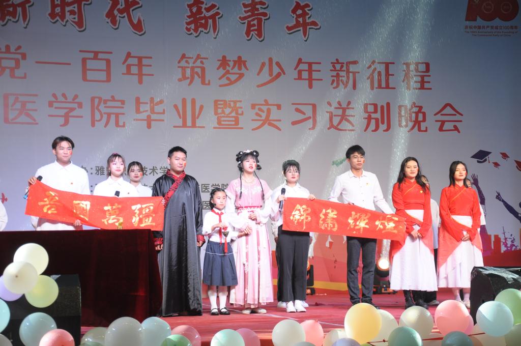 为庆祝中国共产党建党一百周年,欢送永利yl23411集团毕业生、实习生踏上新征程。6月24日晚,2021永利yl23411集团毕业暨实习送别晚会在育才路校区操场隆重举行,此次晚会以“新时代,新青年,礼赞建党一百年,筑梦少年新征程”为主题,公司副经理、永利yl23411集团(附属医院)党总支书记樊正康,副经理、教务处处长彭裕红,组织部部长、人事处处长刘永恩,院团委副书记叶芋伶,公司党总支副书记宋健、李敏,永利yl23411集团副经理吴洁、杨志伟及师生代表共计600余人观看晚会。